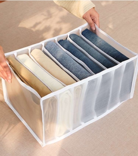 Jeans Compartment Storage Box Wardrobe Collect Clothes Drawer Mesh Divider Box Stack Pants Storage Gadget Washable