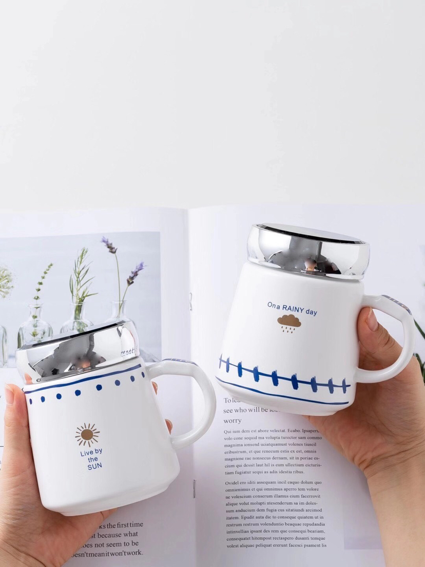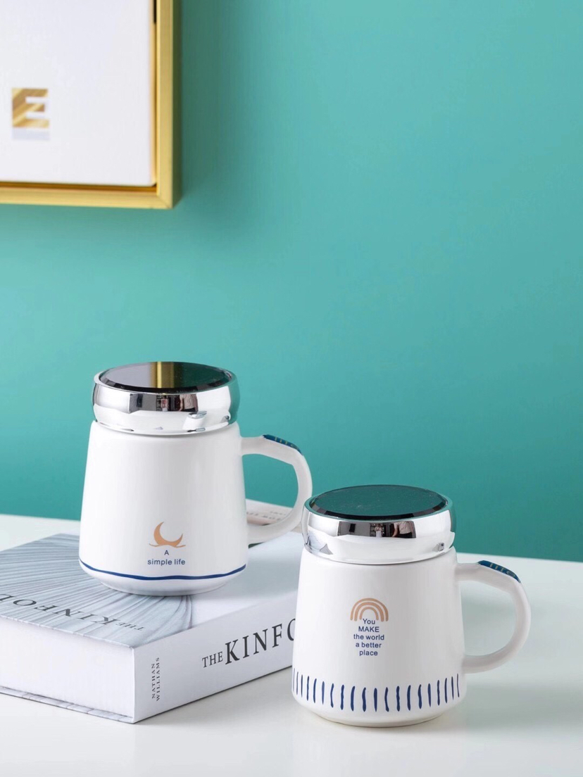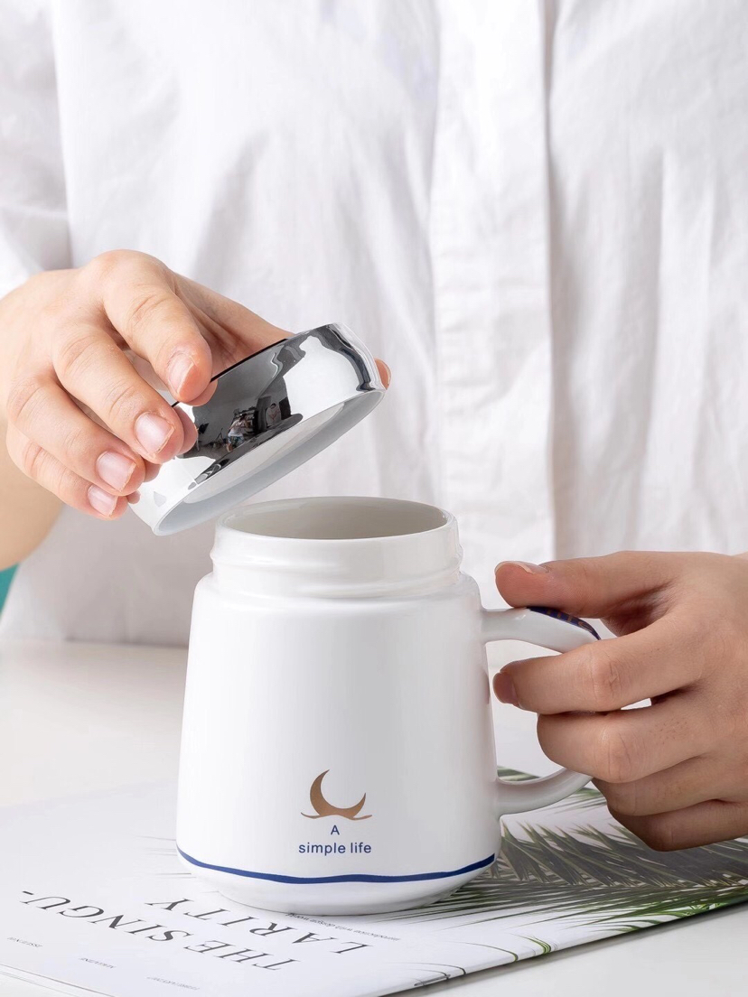 Hot Sale Simple Geometric Seal Cover Ceramic Cup Mug with Lid Office Water Glass