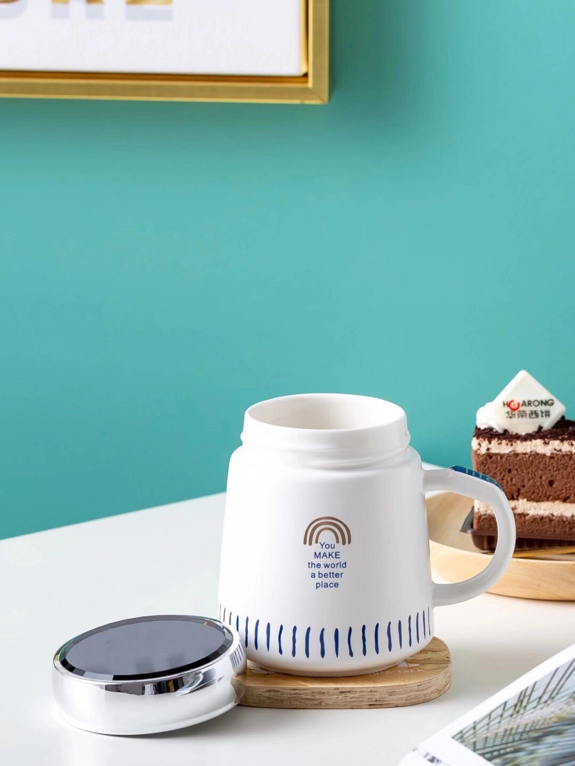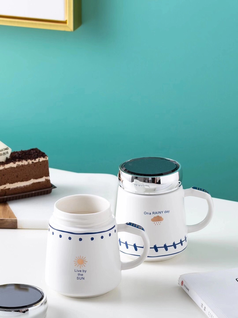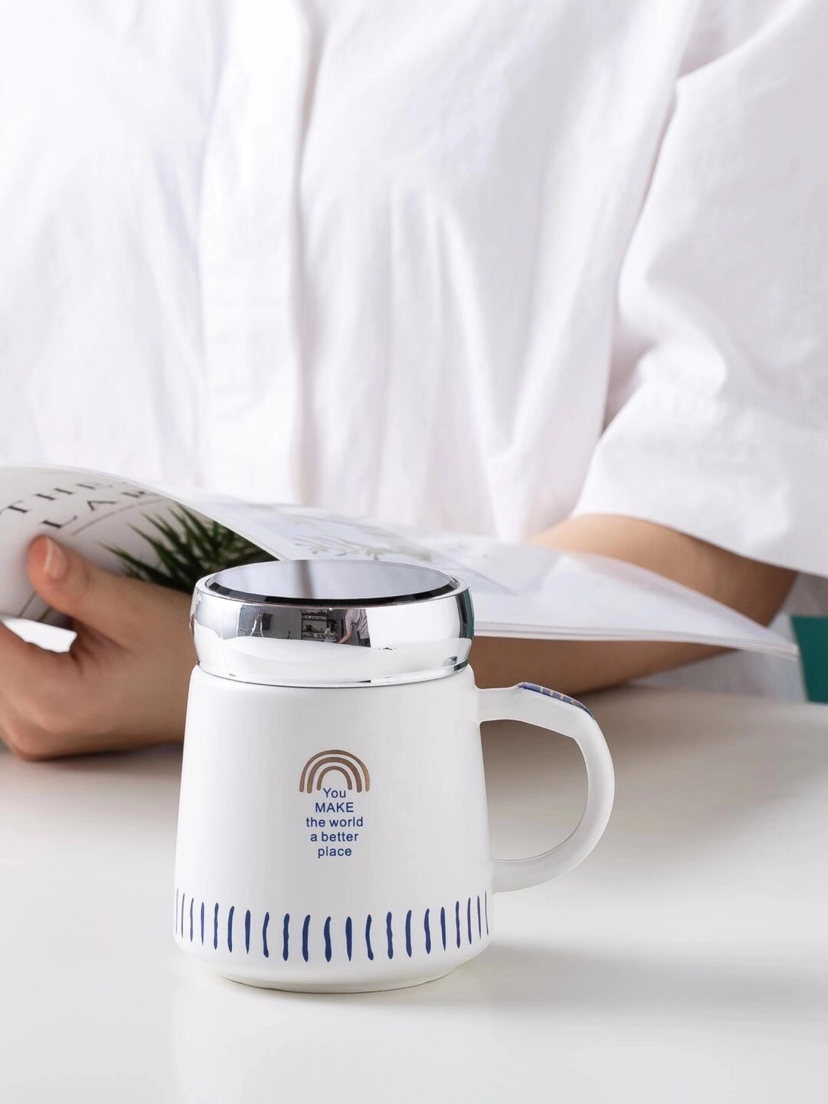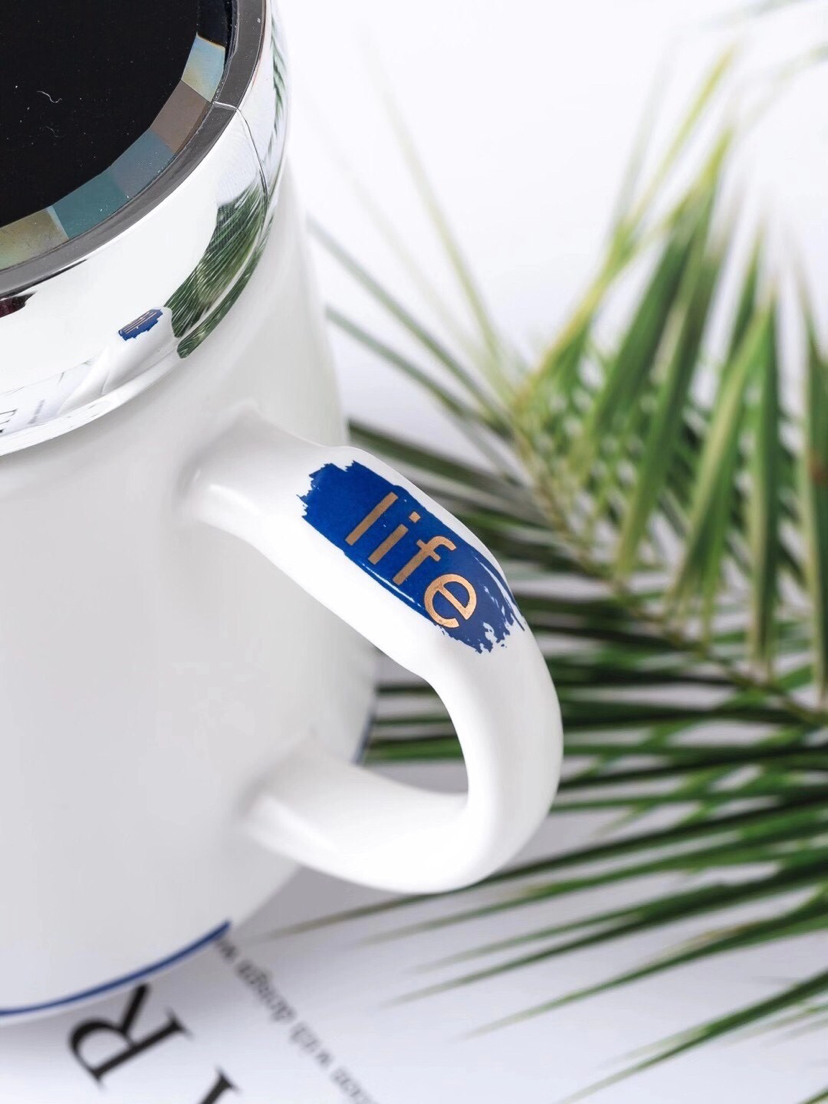 Hot Sale Simple Geometric Seal Cover Ceramic Cup Mug with Lid Office Water Glass