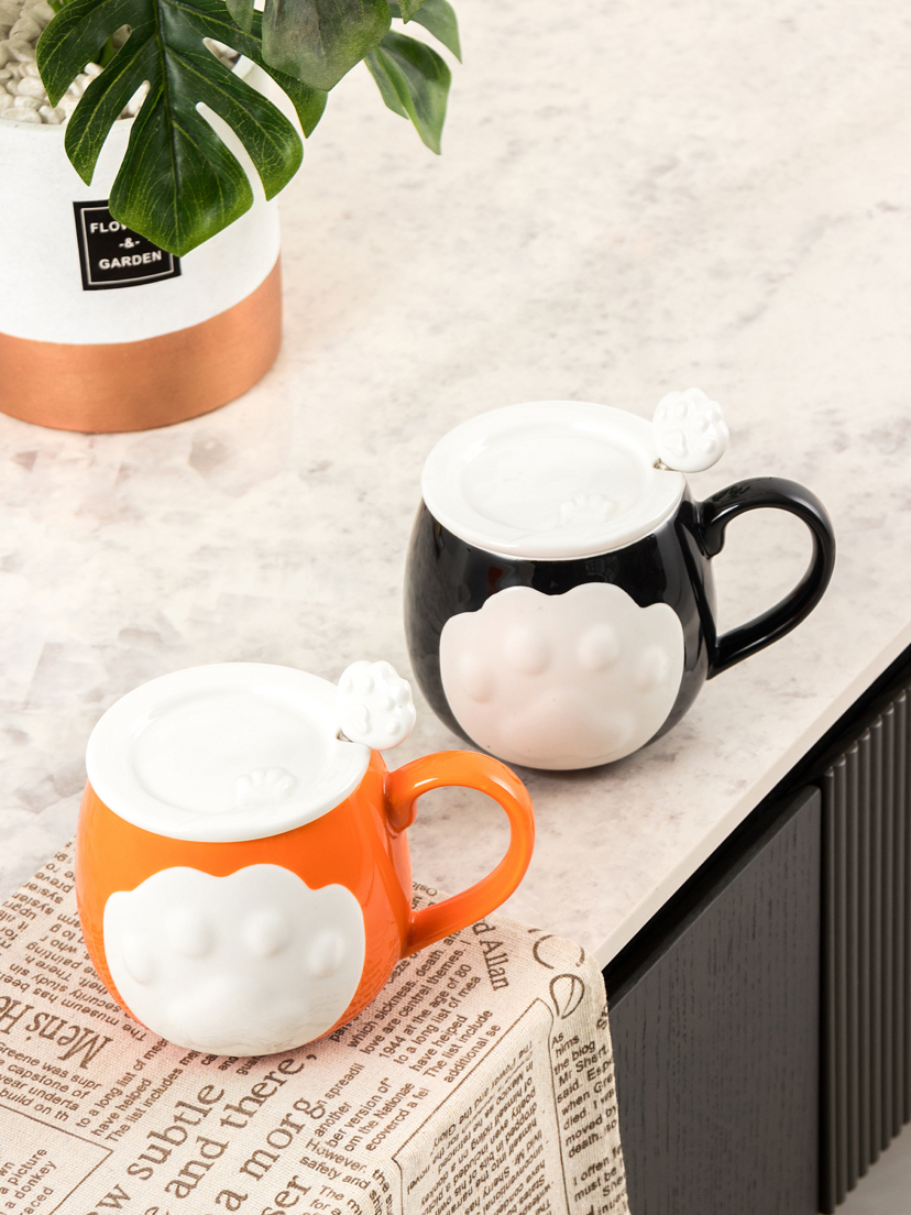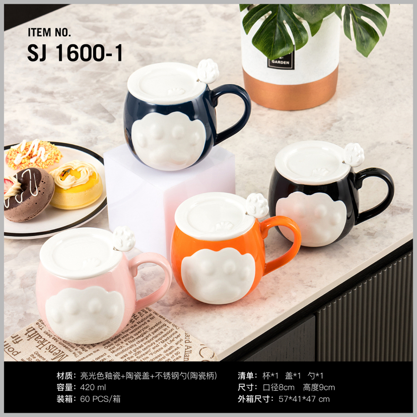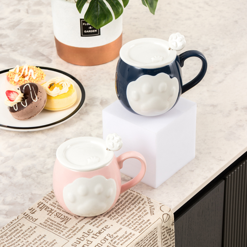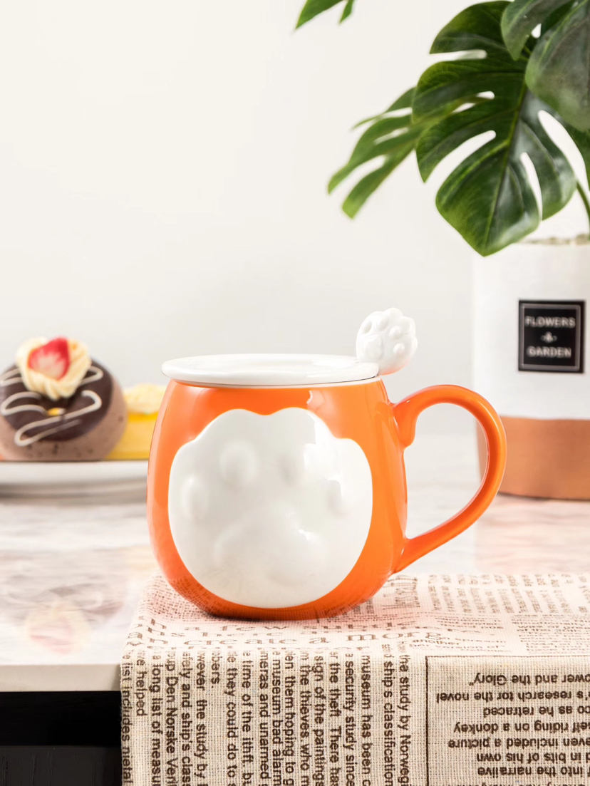 Hot Sale Cartoon Porcelain Cup Cat's Paw Creative Glass with Cover with Spoon Coffee Cup