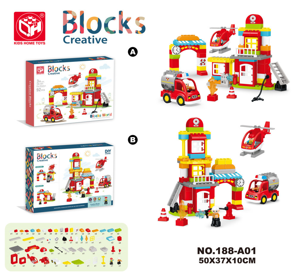 compatible with lego particles toy boys and girls gift box puzzle building blocks -- fire department 92pcs