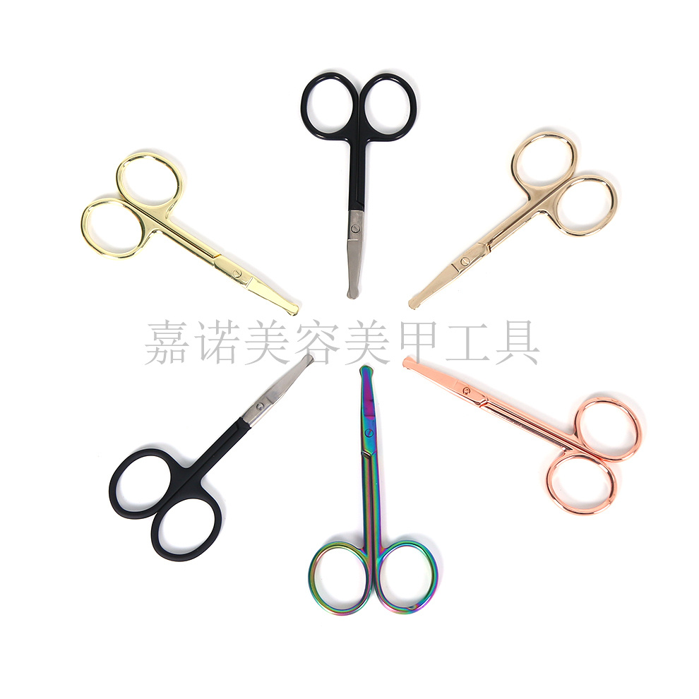 factory direct sales round head vibrissac scissors nose hair trimmer stainless steel safety nose trimmer men's eyebrow shaping makeup