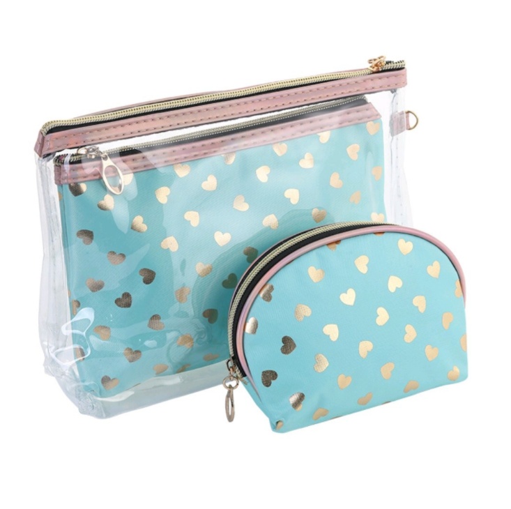About Product:New Transparent Three-Piece Fashion Love Cosmetic Bag