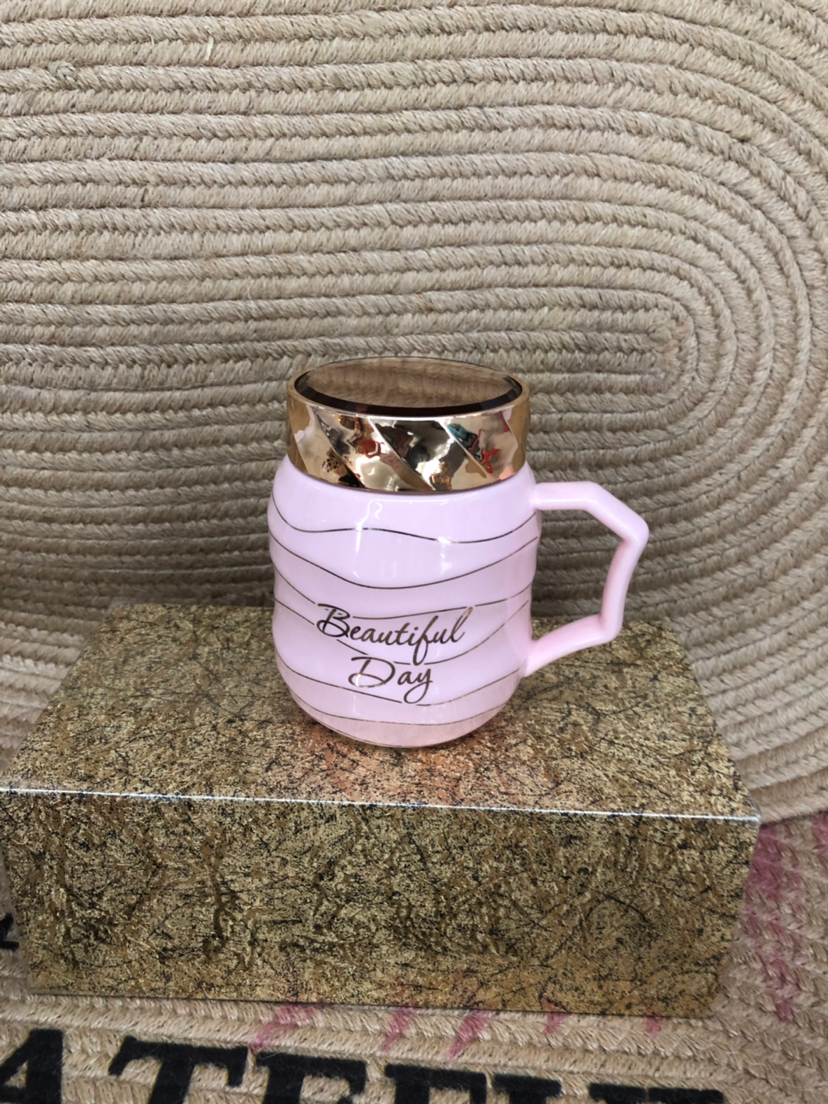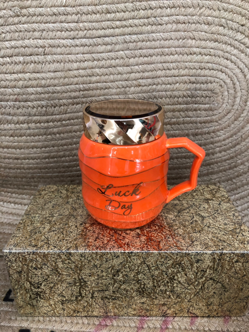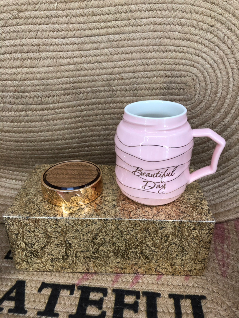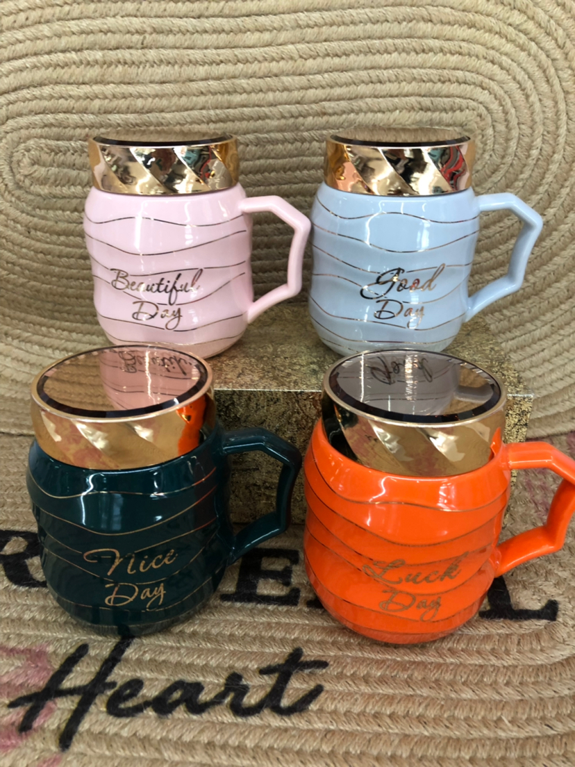 Hot Sale Explosion Sealed Cover Simple Letters Ceramic Cup Office Water Glass