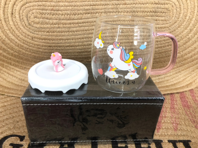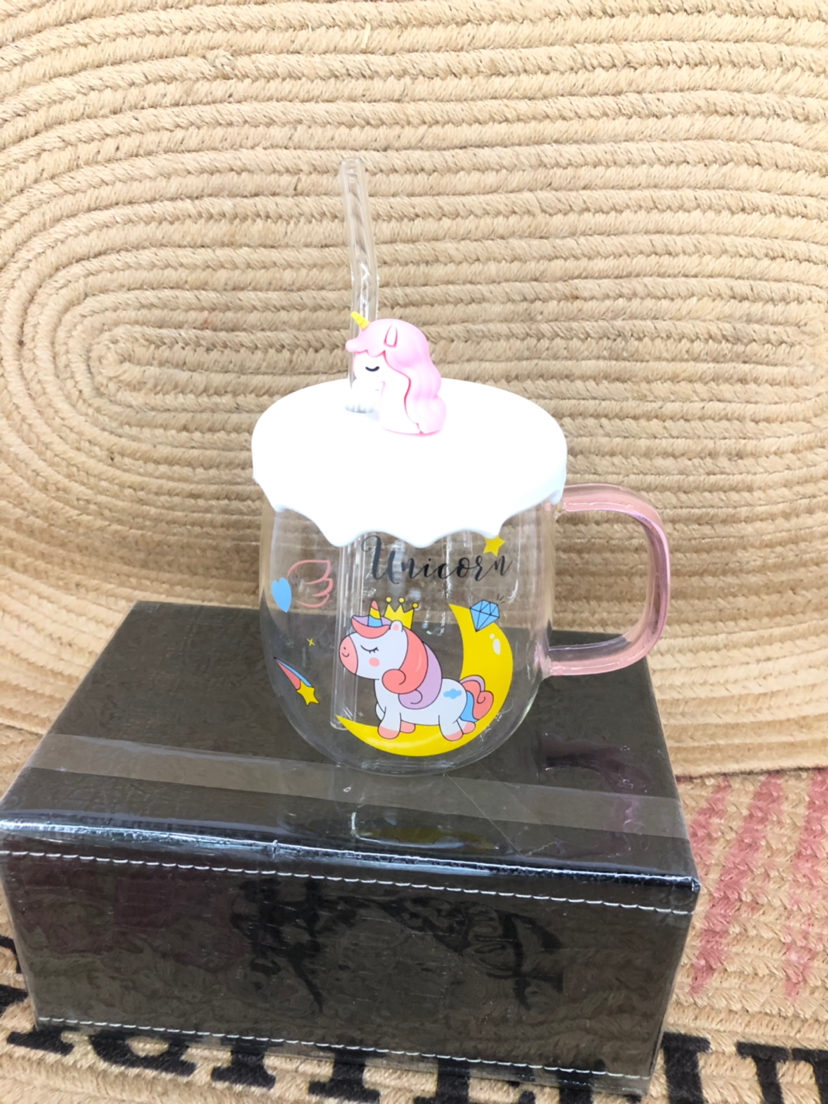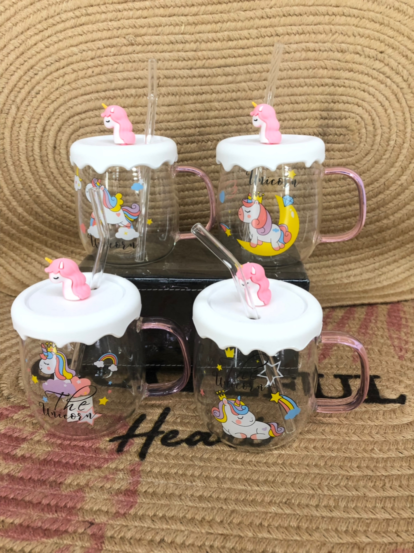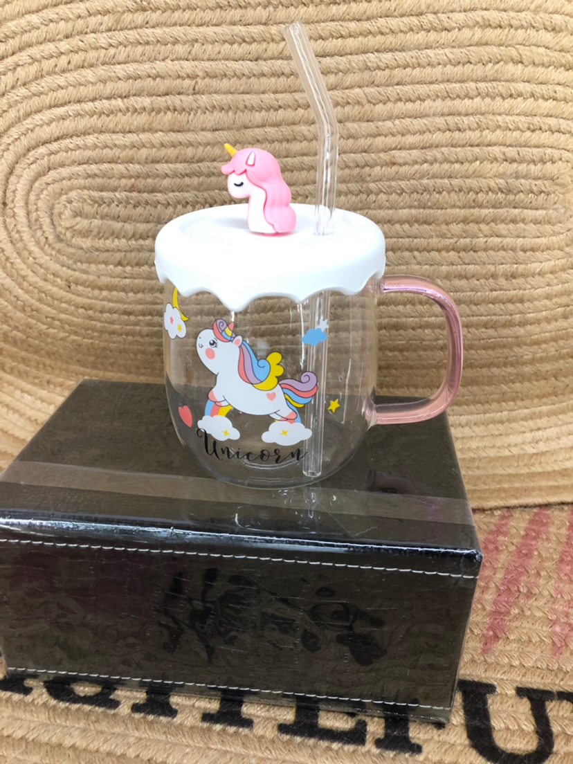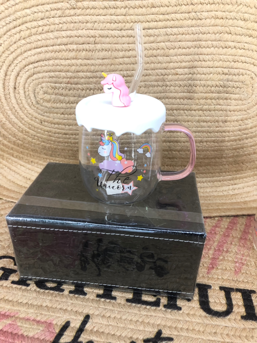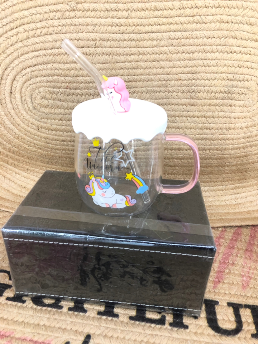 Hot Selling Unicorn Heat-Resistance Glass Silicone Cup Cover Water Cup with Straw Office Cup