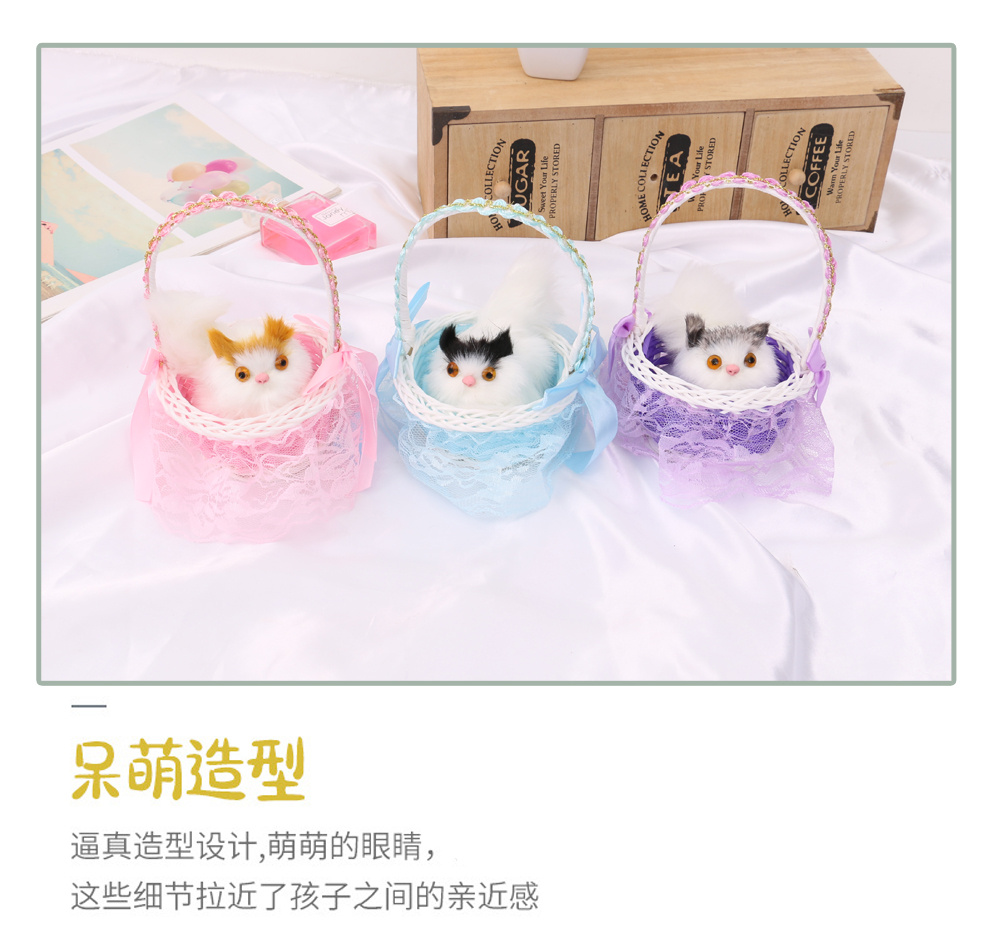 Product Name: Lace Edged Basket Simulated Cat Dolls for Children's Birthday Gifts for Friends and Classmates Direct Factory Sales