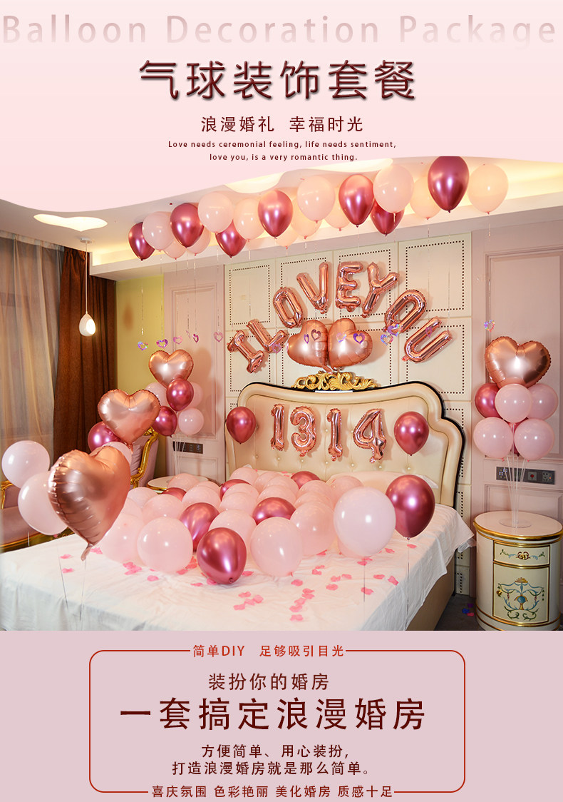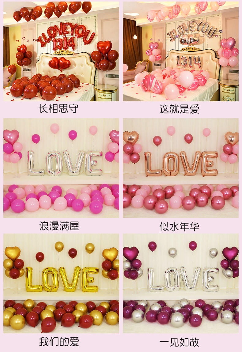 romantic wedding room layout creative proposal supplies decoration balloon wedding tie new house bedroom aluminum balloon valentine's day