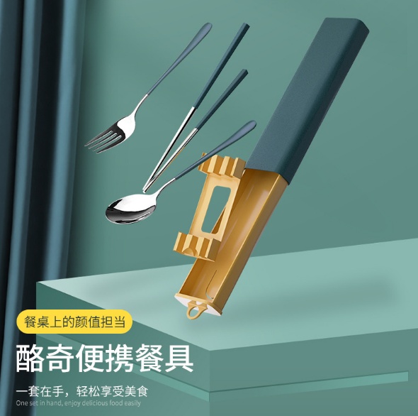 About Product:304 stainless steel portable set chopsticks fork spoon tableware