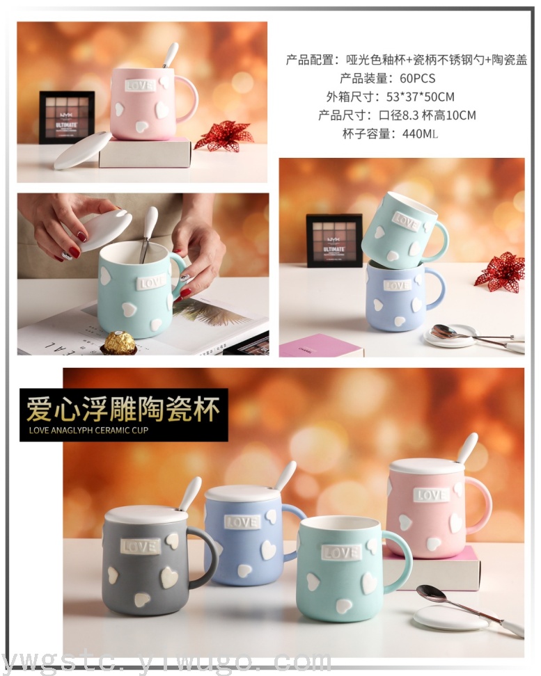 embossed heart-shaped english cup