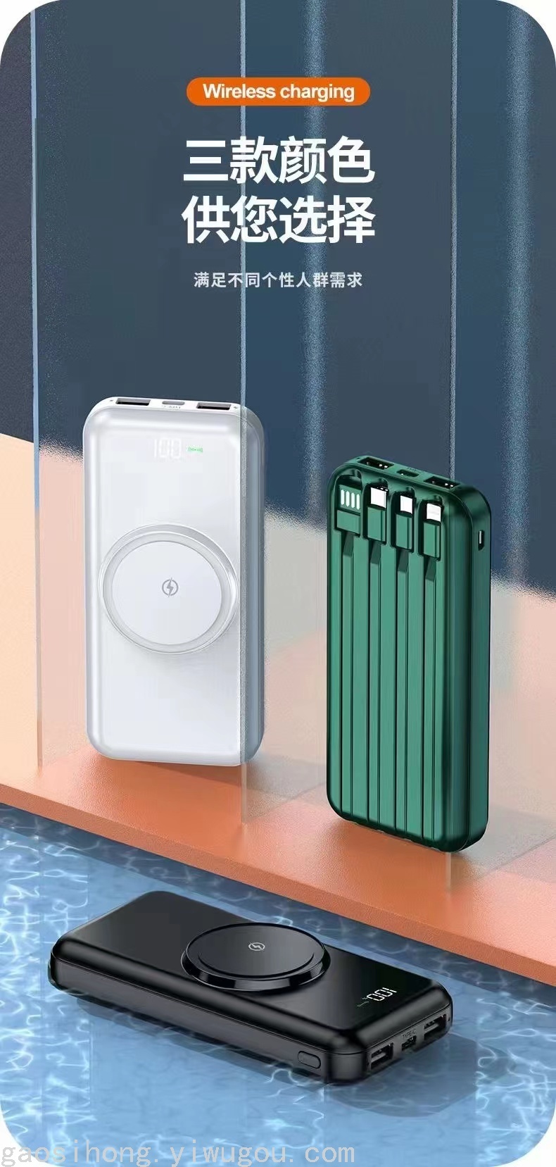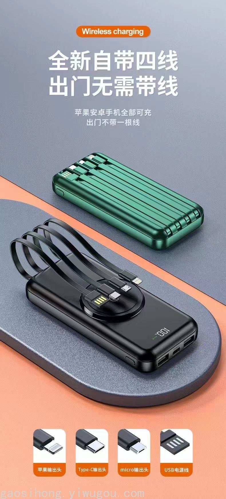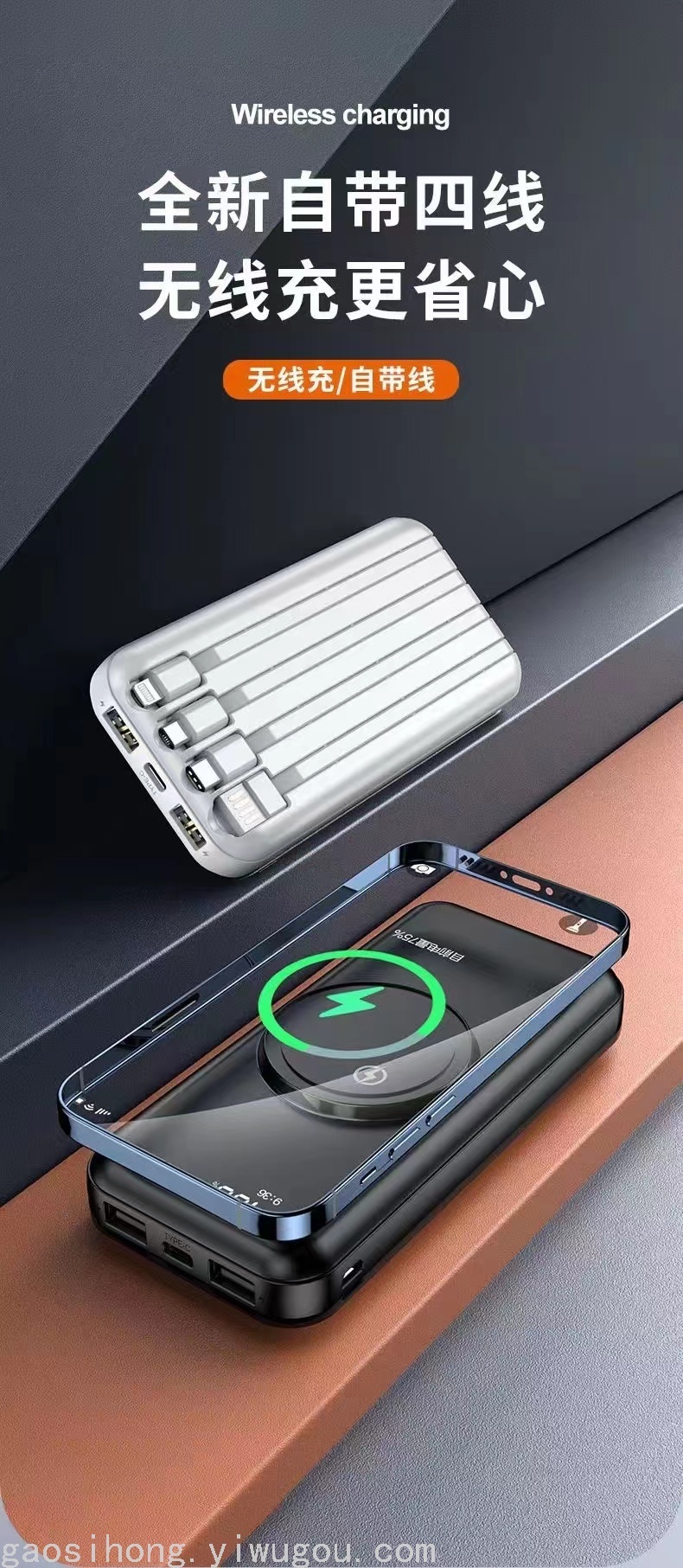 Wireless Power Bank 20000 MA with Cable Mobile Power Supply Large Capacity Outdoor