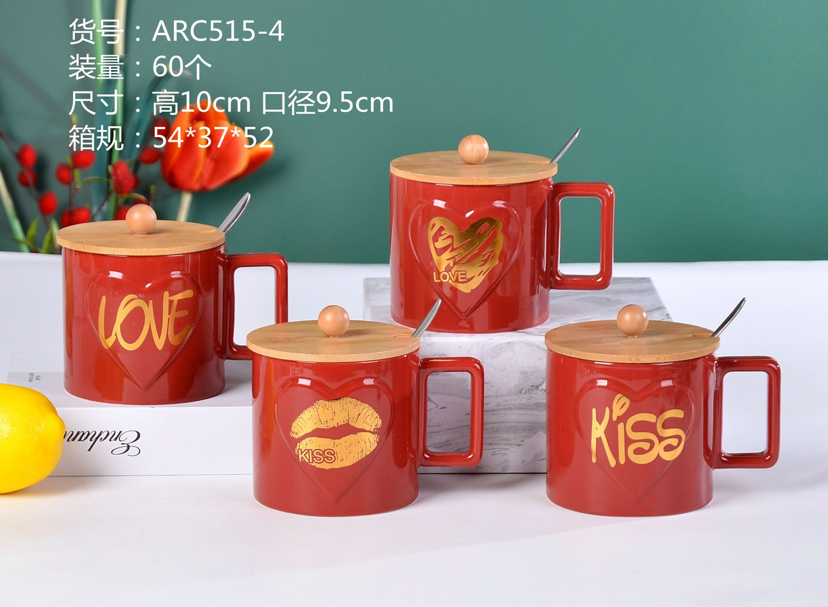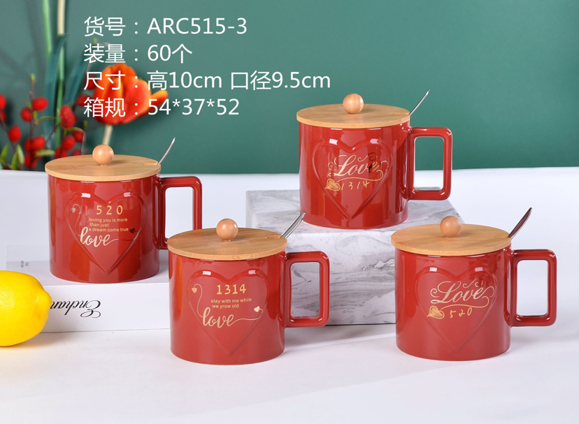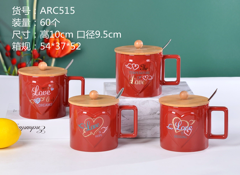 Hot Sale Bamboo Cover Ceramic Cup with Cover Spoon Love Mug