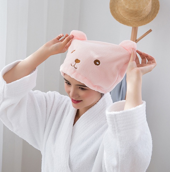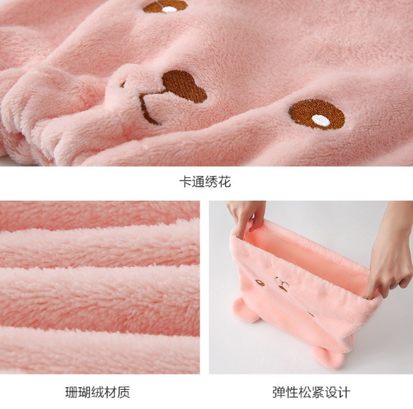 About Product:Bear thickened hair drying cap coral fleece shower cap