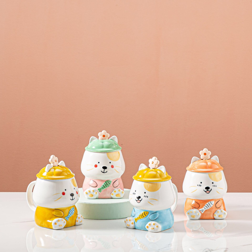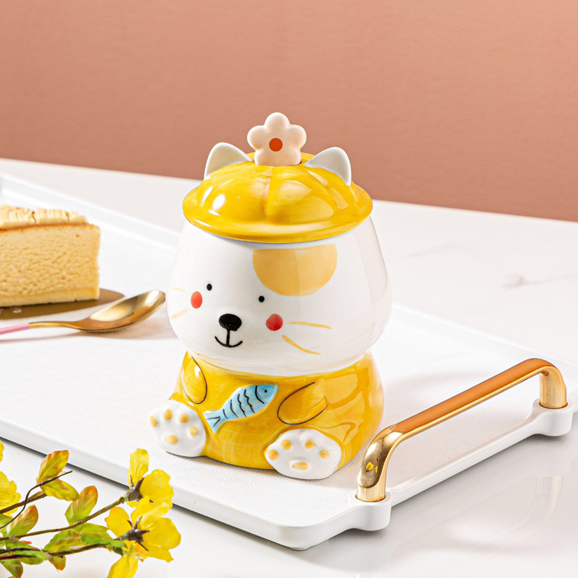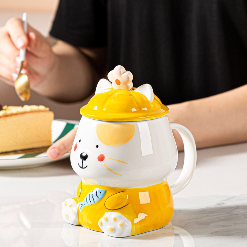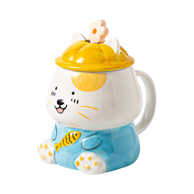 Korean Cartoon Ceramic Cup Hand Drawn Cat Large-Capacity Water Cup Creative Mug
