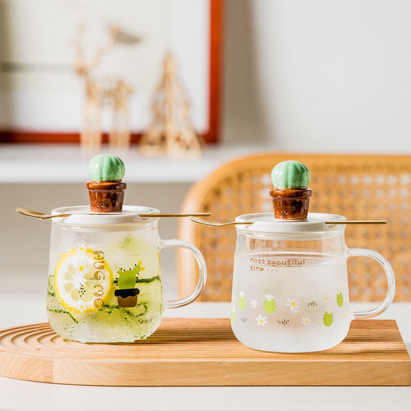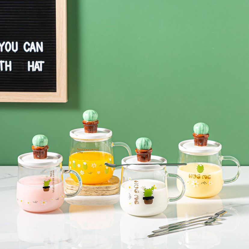 Hot Sale Fresh Heat-Resistance Glass Clear Glass Cup with Cover with Spoon Coffee Cup