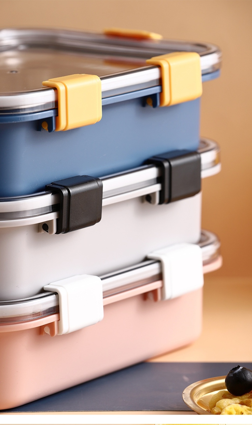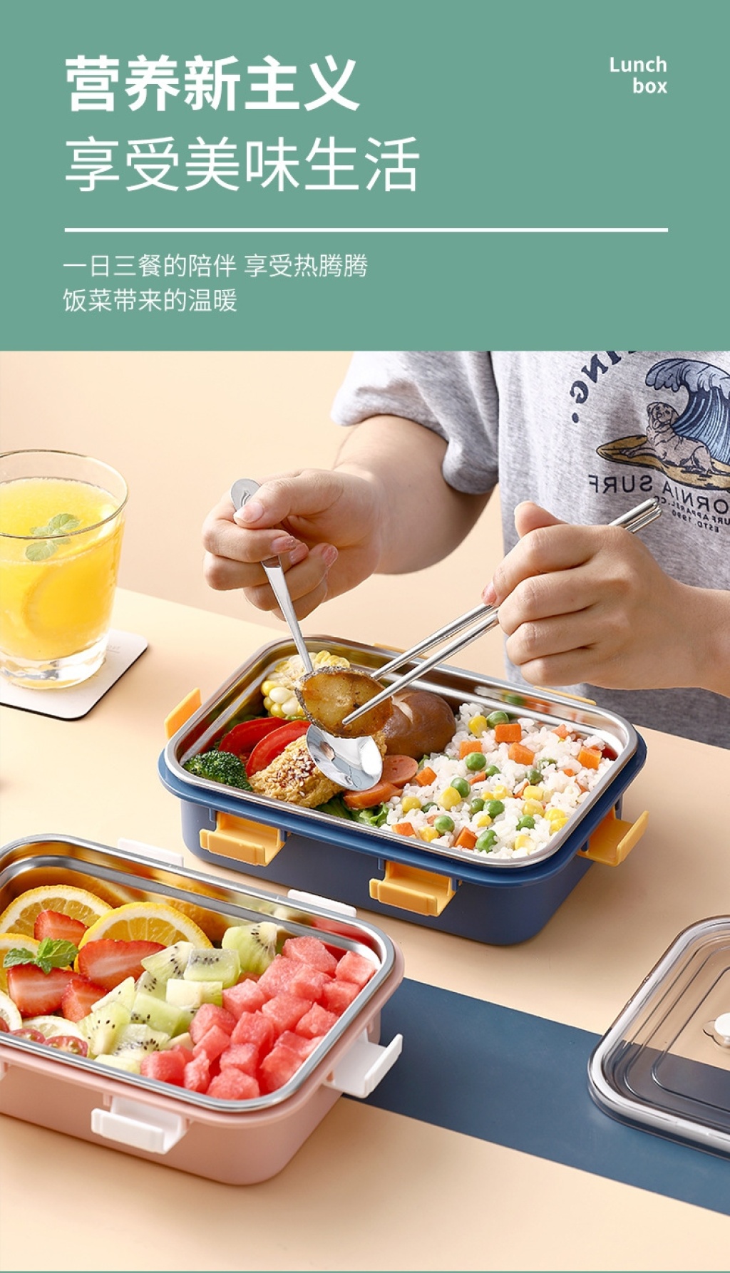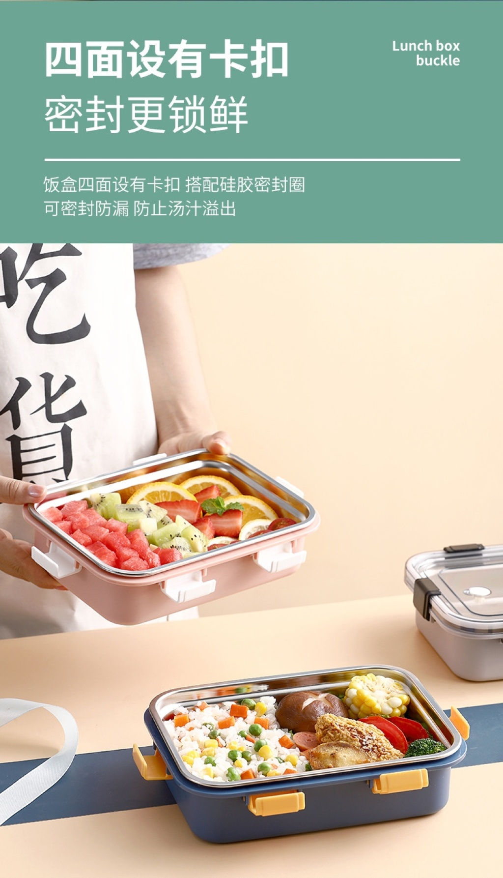 s42-lx-7069 aishang stainless steel fruit crisper buckle sealed portable lunch box transparency cover bento box