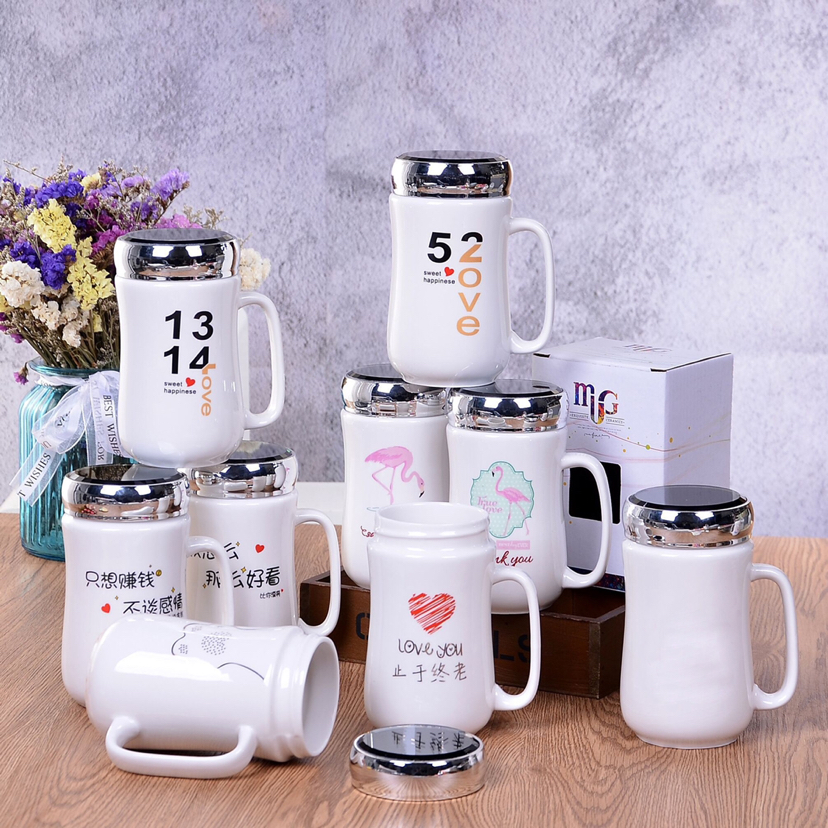 Hot Selling Classic Mirror Cover Ceramic Cup Mug with Lid Office Water Glass Customizable Advertising Gift Cup
