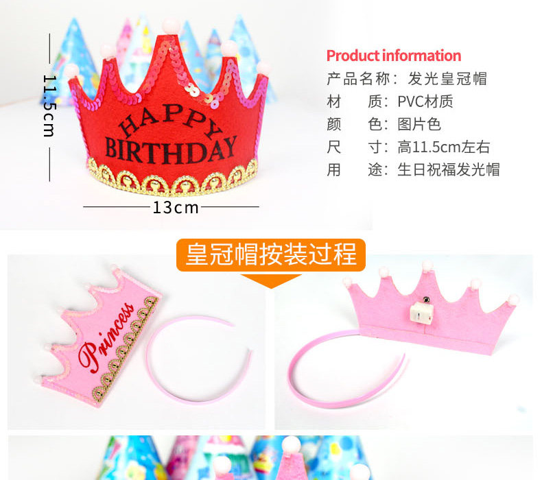 birthday hat adult baby children birthday party supplies luminous birthday crown lde lamp cap birthday headwear
