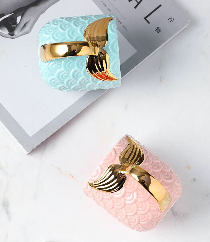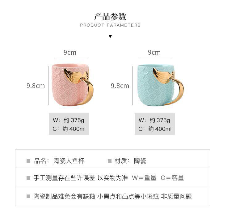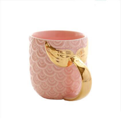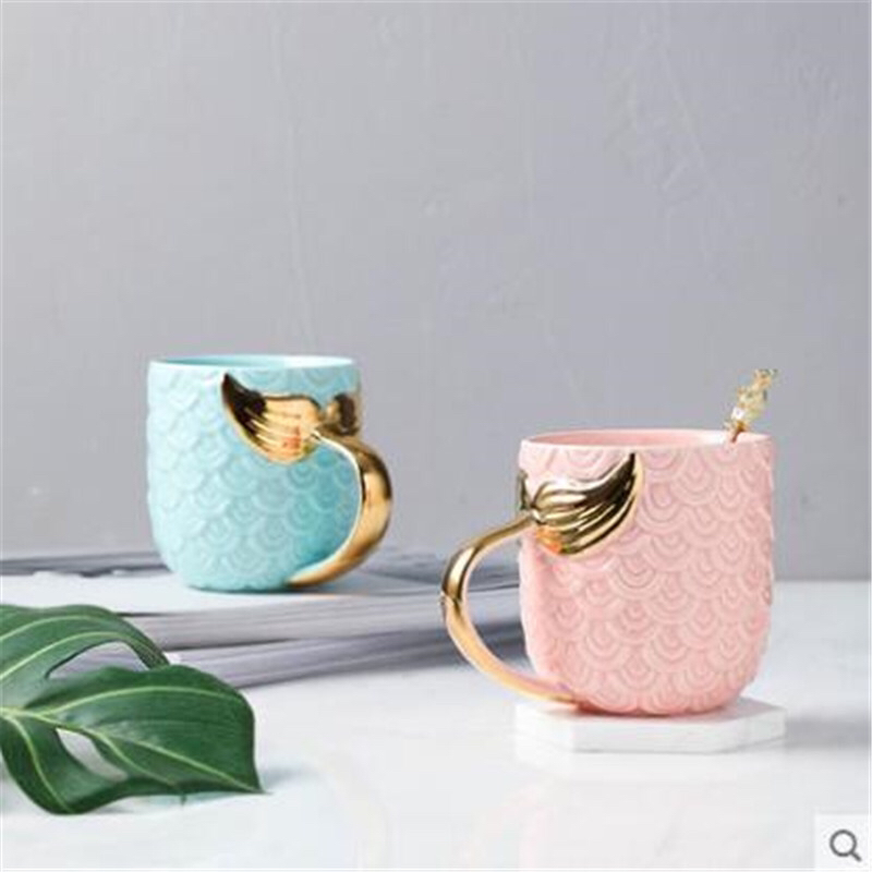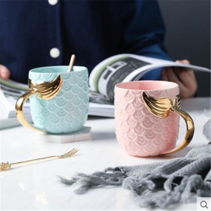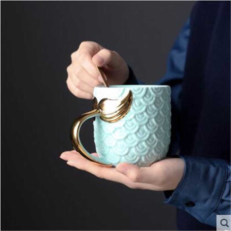 Creative Mermaid Mug Embossed Gold Fishtail Ceramic Cup European Breakfast Cup Novelty Water Cup