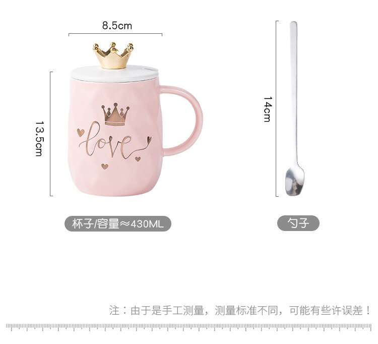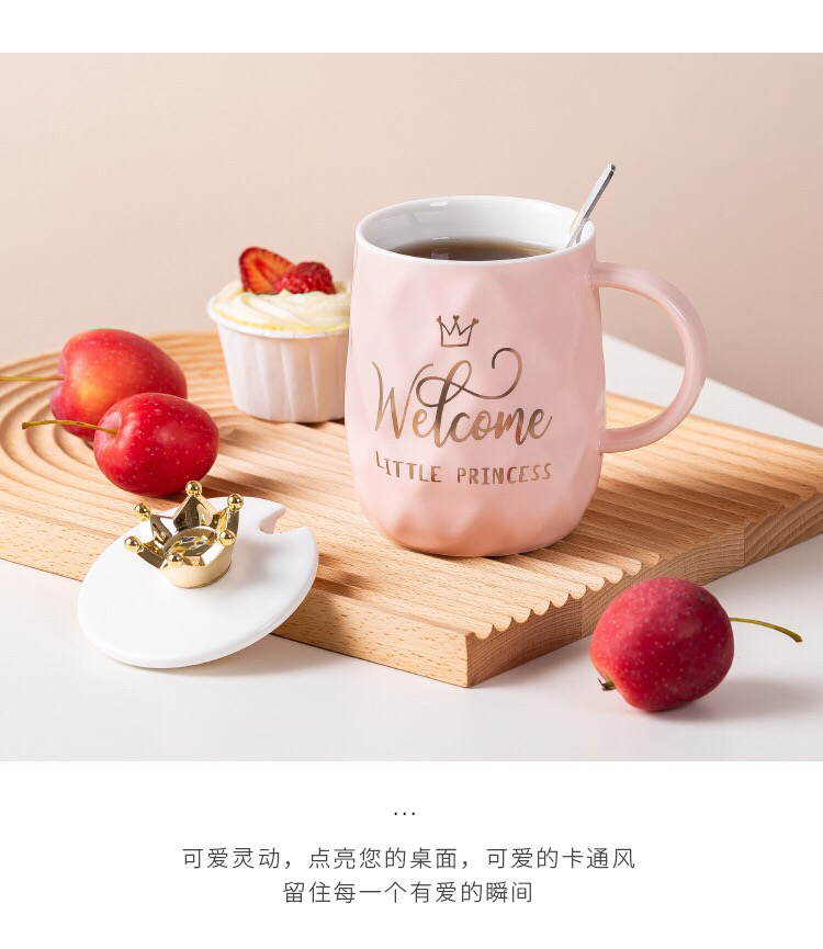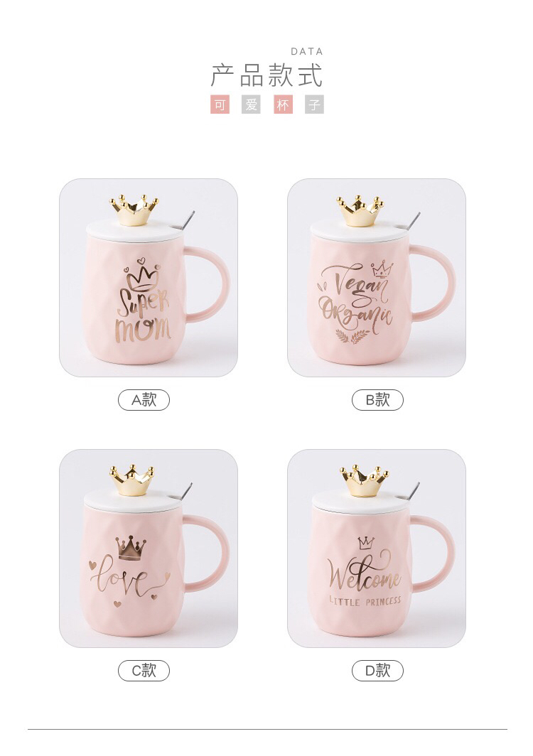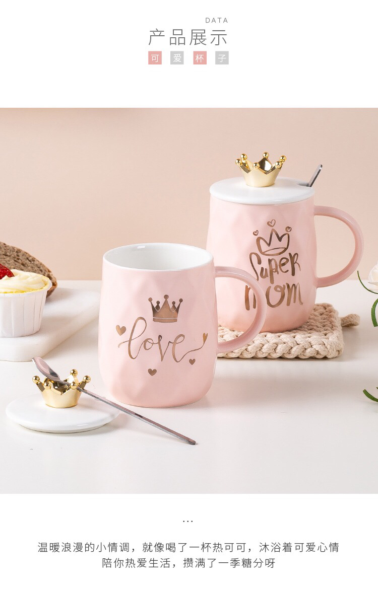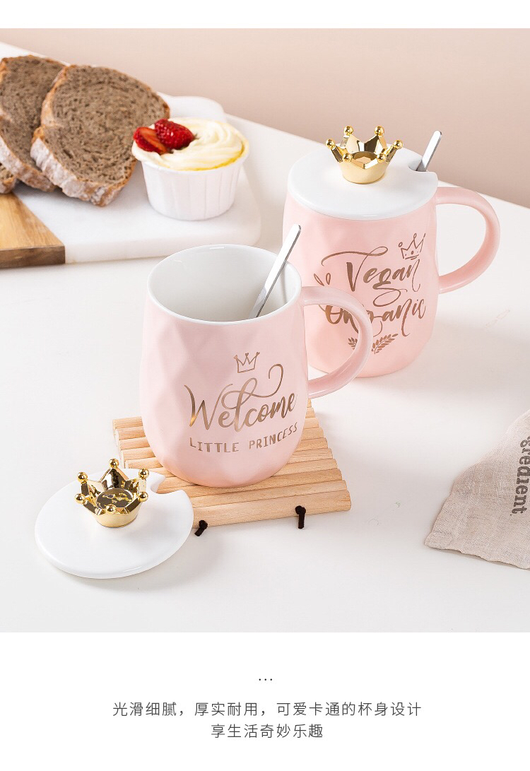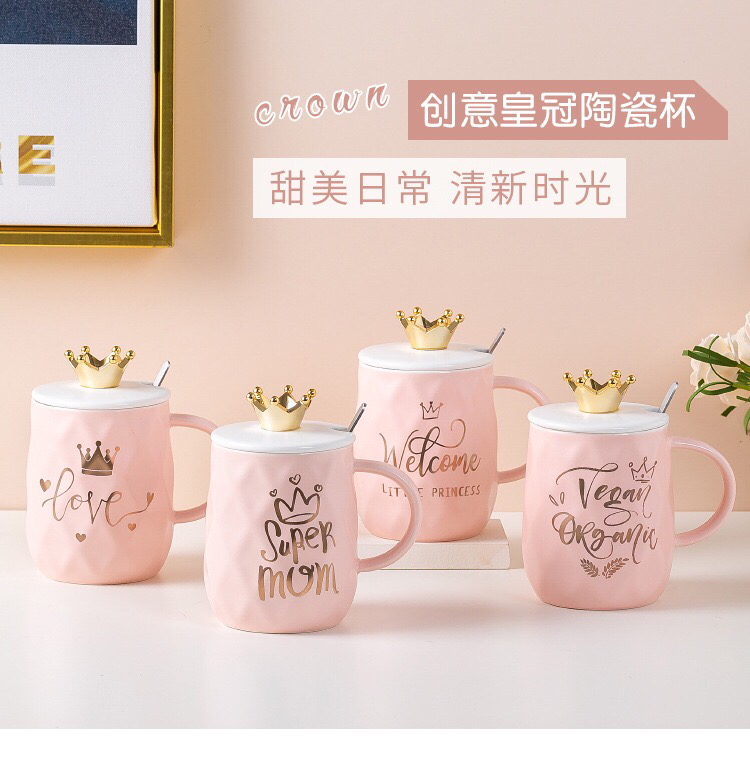 Hot Sale Gold-Plated Crown Ceramic Cup Gold-Painted English Text with Cover with Spoon Coffee Cup Creative Mug Office Water Cup