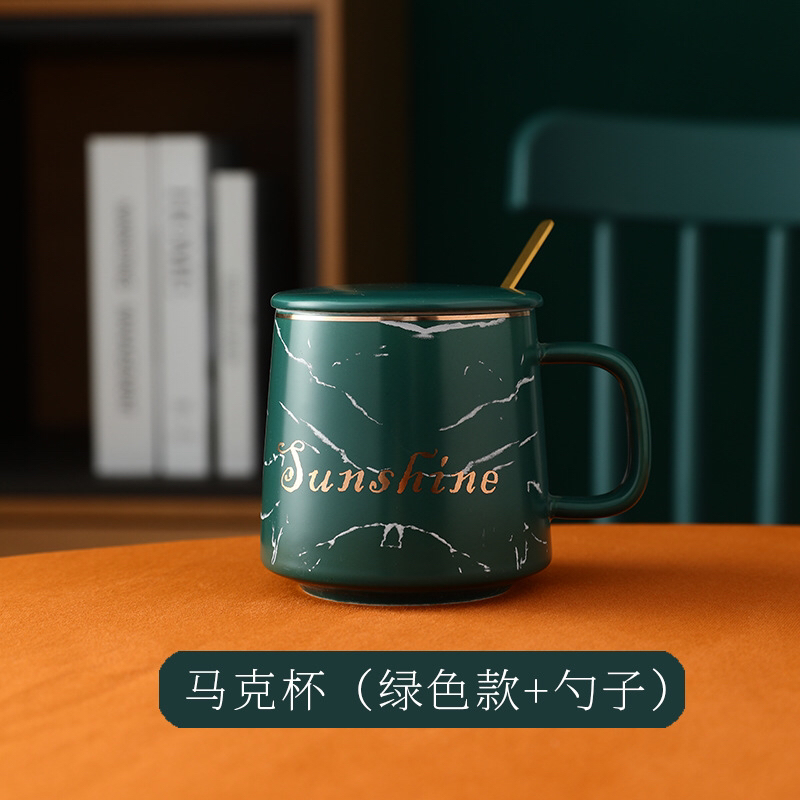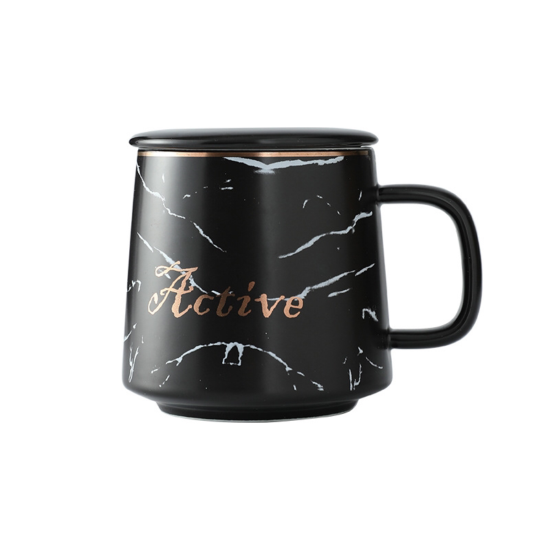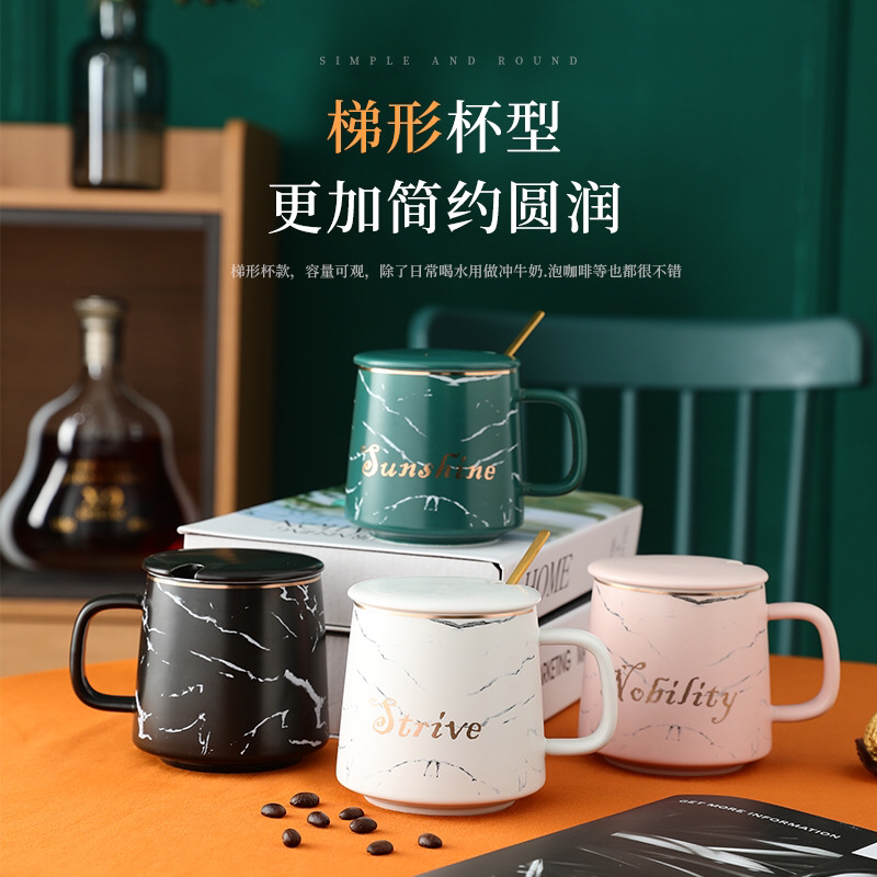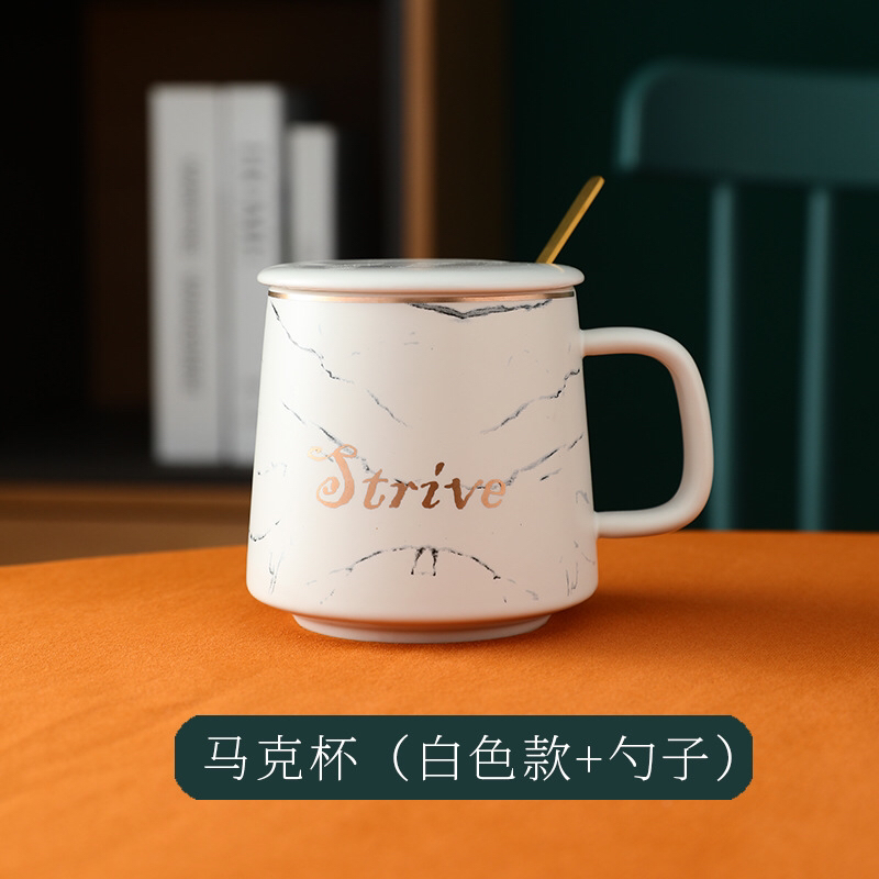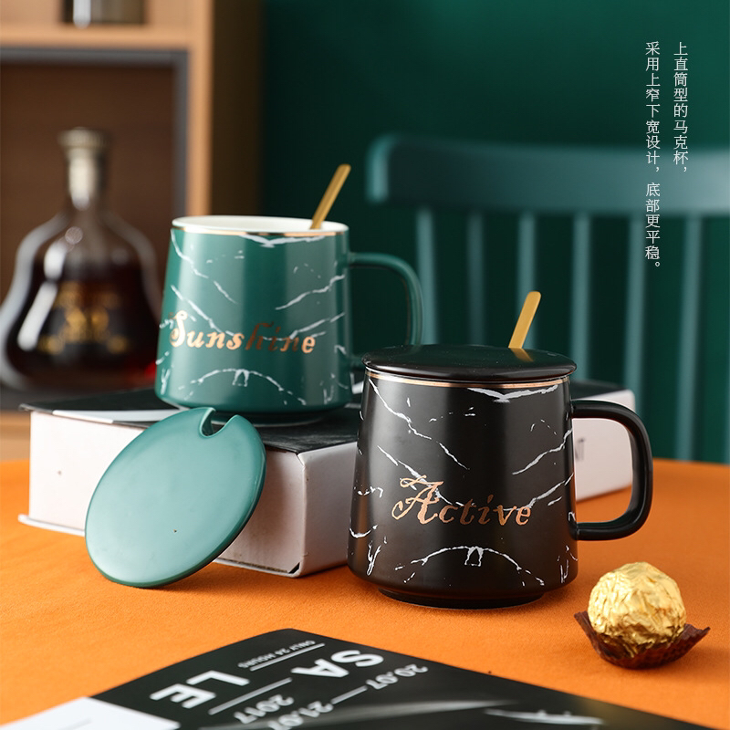 Nordic Style Marbling Mug with Lid Bring Ceramic Cup Simple Milk Coffee Cup Gift Cup