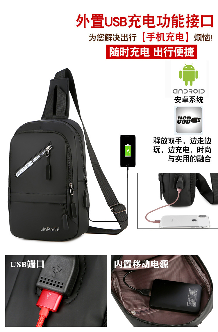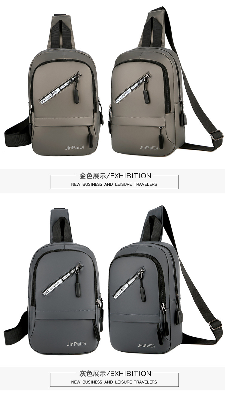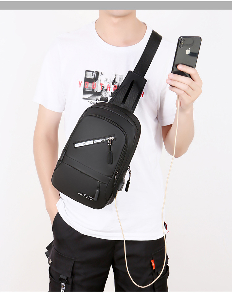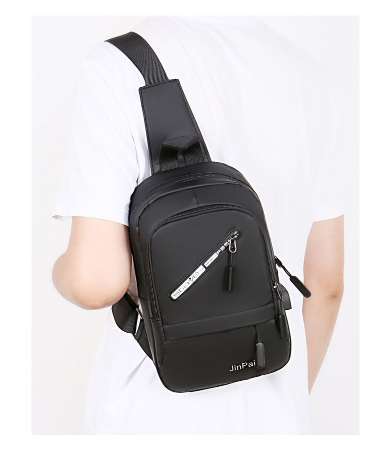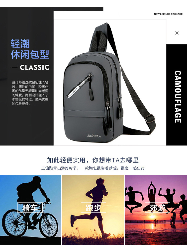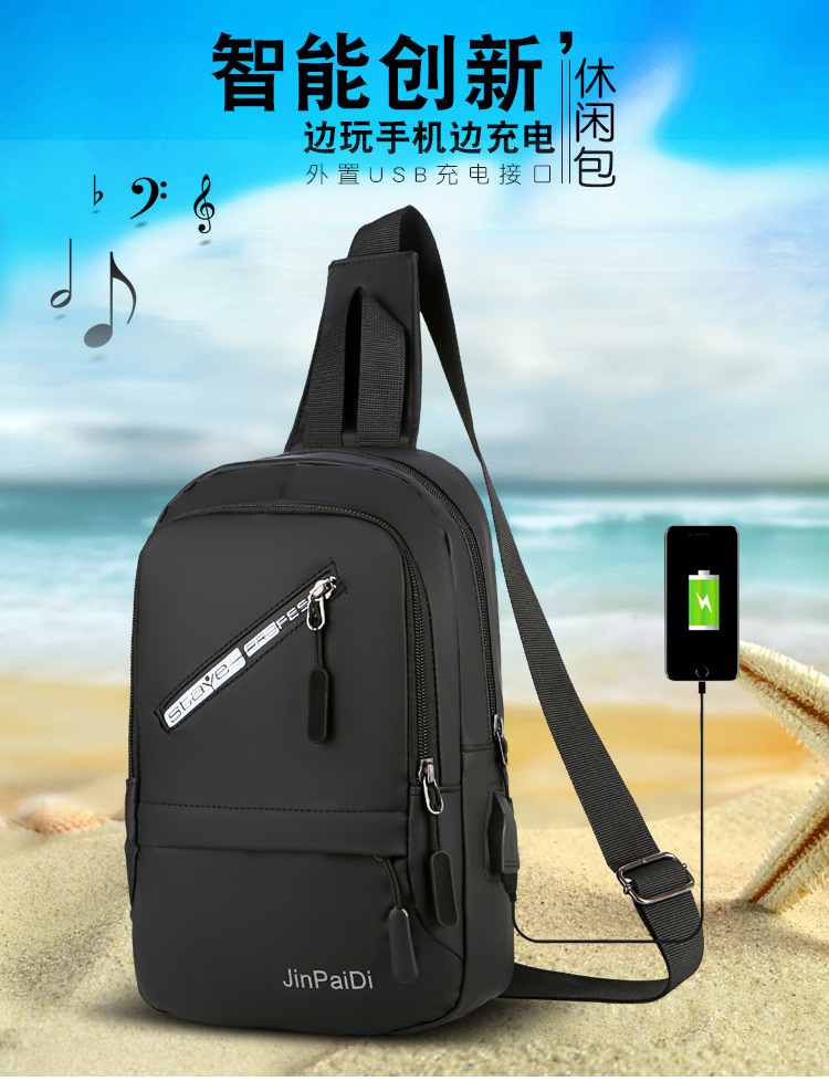 New USB Rechargeable Chest Bag Men's Waterproof Zipper Korean Outdoor Portable Shoulder Bag