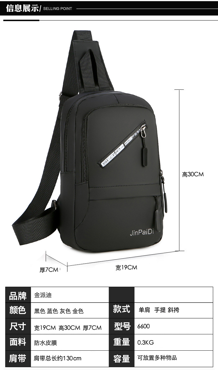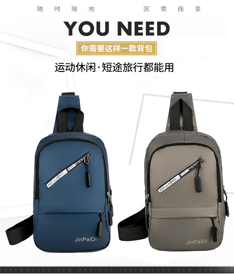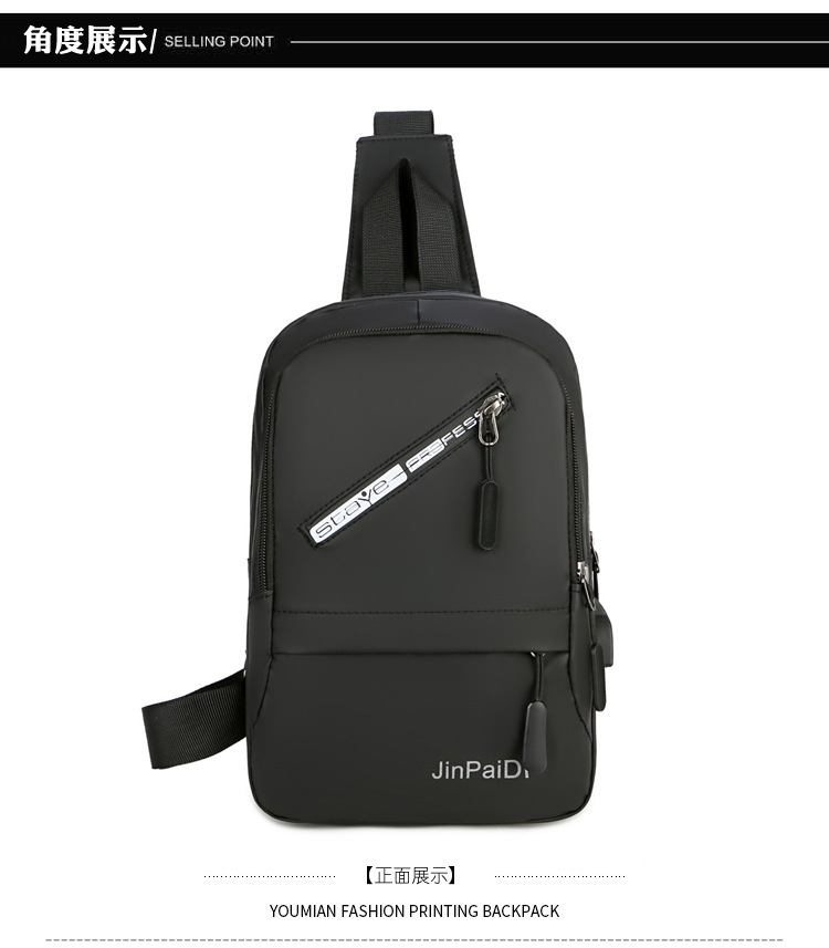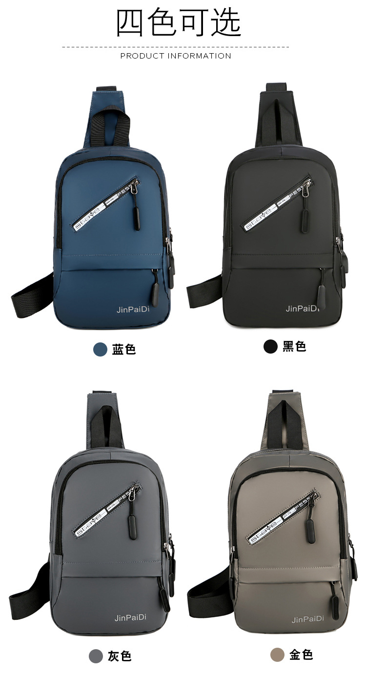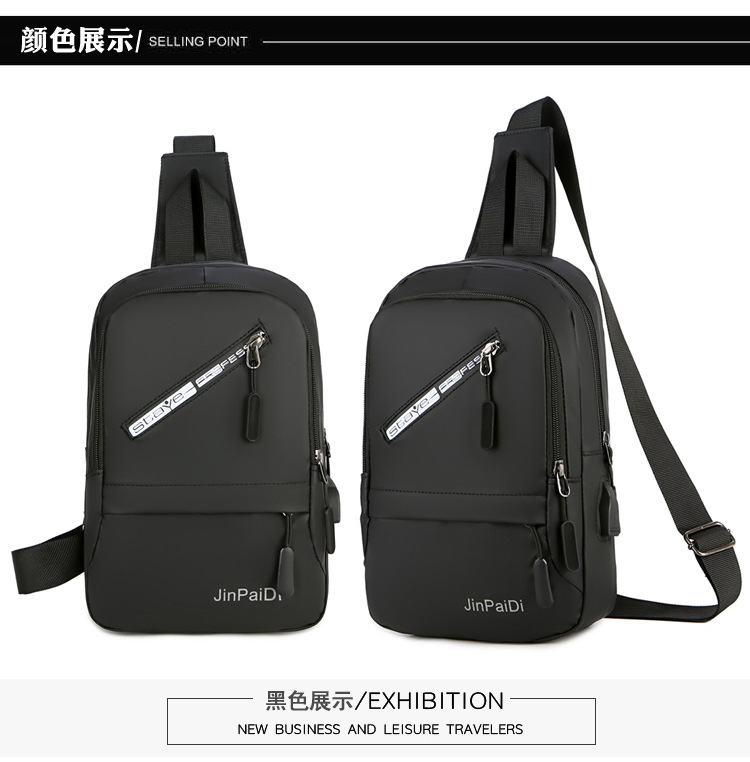 New USB Rechargeable Chest Bag Men's Waterproof Zipper Korean Outdoor Portable Shoulder Bag