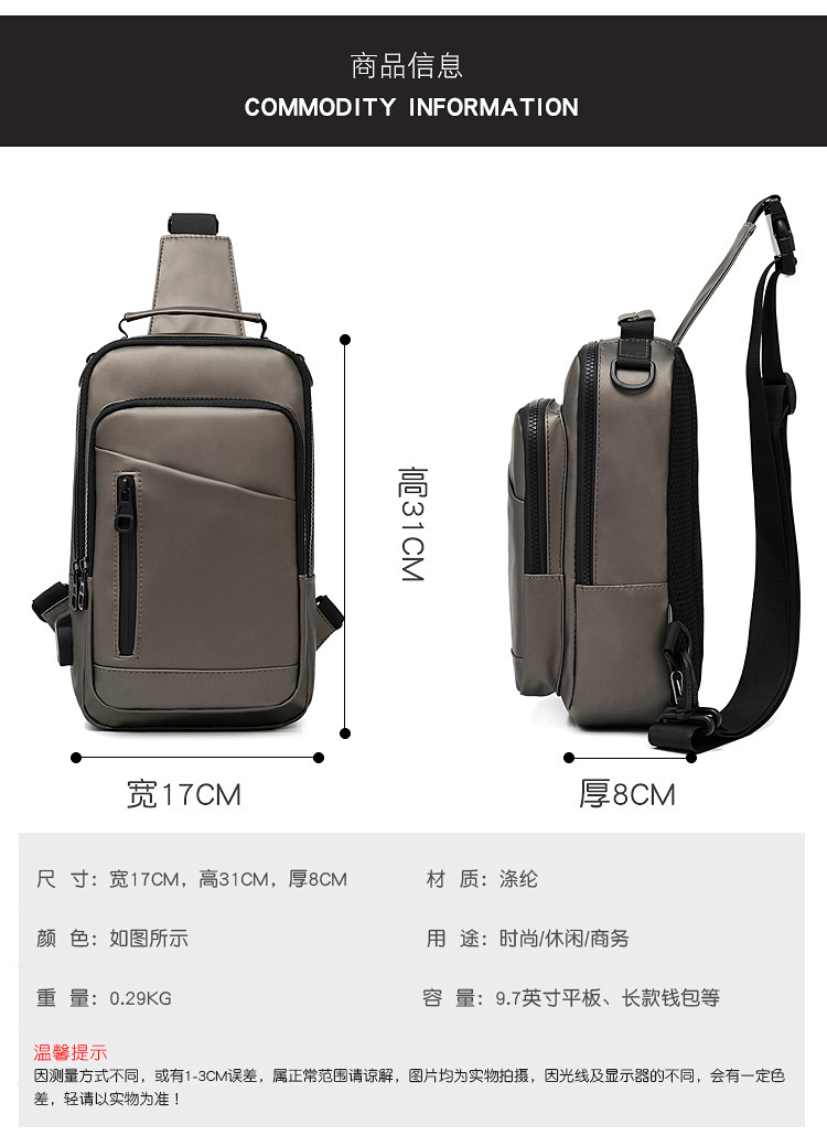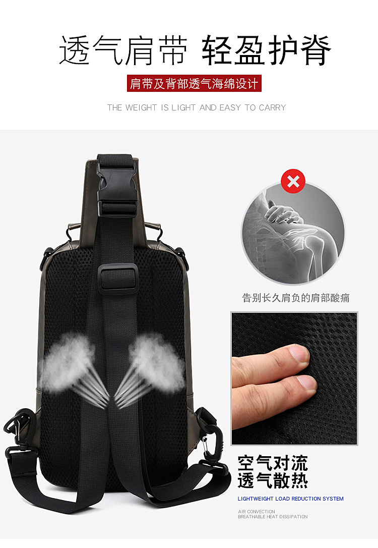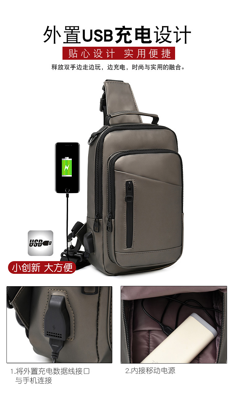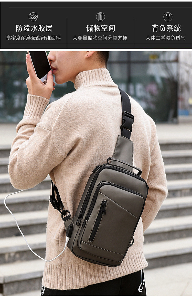 New Charging Smart Chest Bag Men's Shoulder Bag Casual Fashion Crossbody Multi-Function