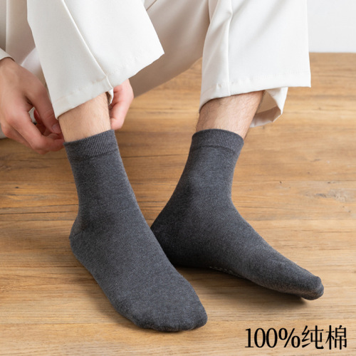 Autumn Winter Socks Men's Mid-Calf Deodorant and Sweat-Absorbing Cotton Solid Color Stockings Cotton Business Men's Long Tube