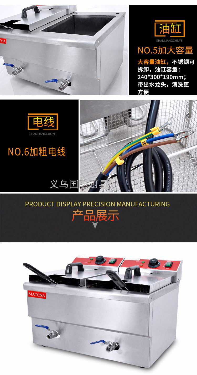 electric fryer with double cylinders and double sieves fy-13l-2 commercial frying pan deep fryer fried chicken wing chicken leg french fries equipment