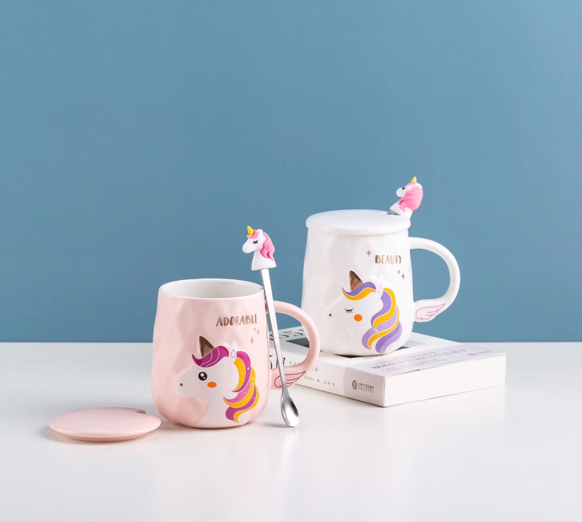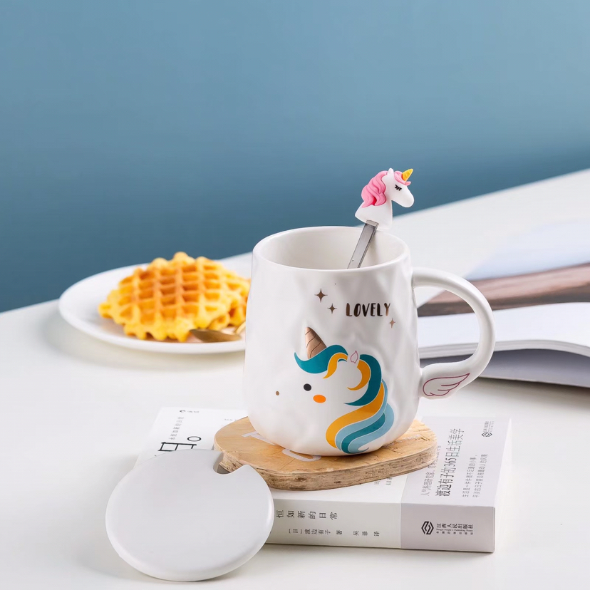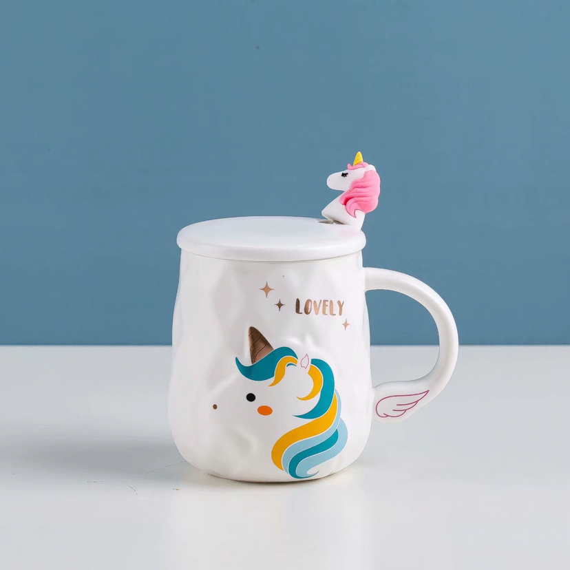 Creative Cartoon Unicorn Ceramic Cup with Cover with Spoon Mug Cute Water Glass