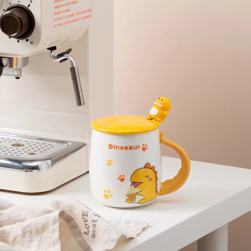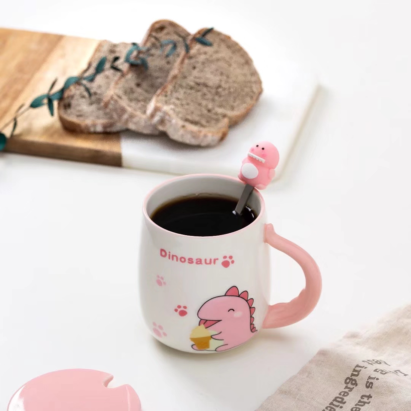 Creative Cartoon Four-Color Unicorn Ceramic Cup with Cover with Spoon Mug Cute Water Glass Office Coffee Cup