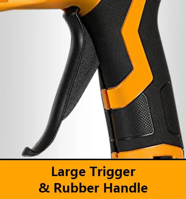 ■【Maximum Control】Unlike those small glue guns, the trigger of this hot glue gun is large enough to support two fingers, giving you full control over the glue stream to suit the needs of the job at hand. Also the rubber coating handle offers you a comfortable grip during working.