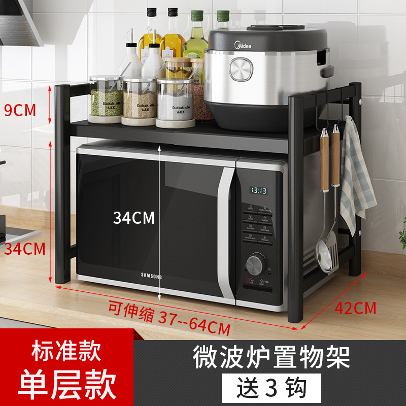 [extra thick-black] single-layer microwave rack +3 hooks (retractable 37-64cm)