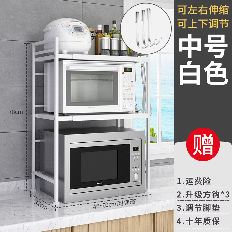 [ordinary-white] double-layer microwave rack +3 hooks (retractable 40-60cm)