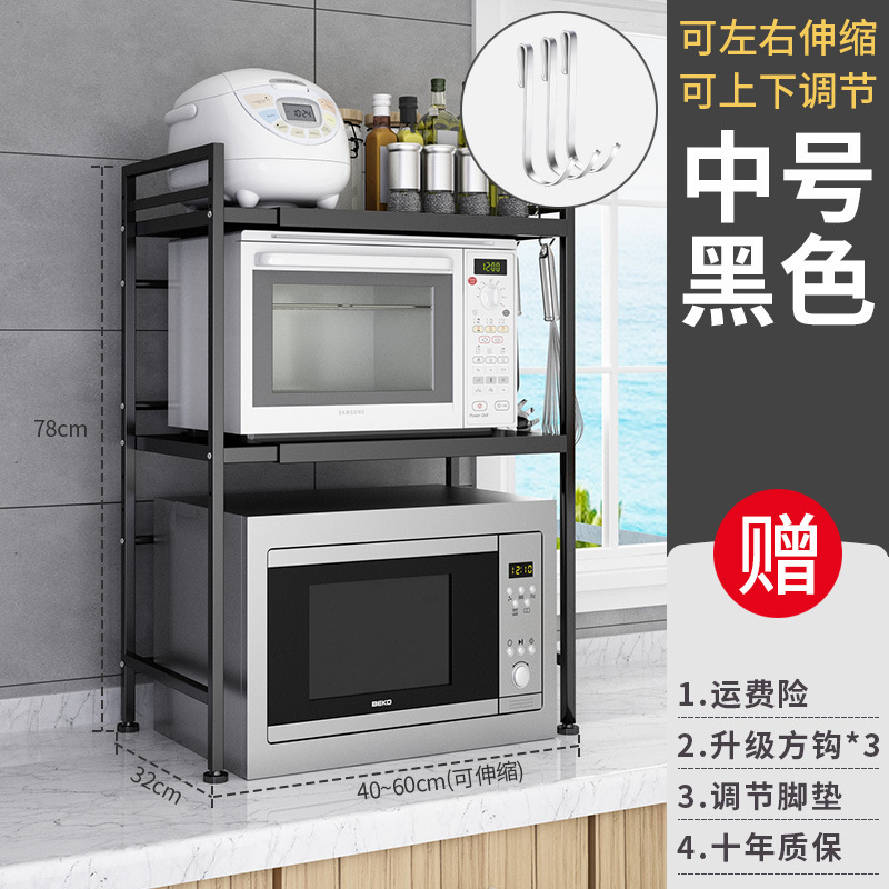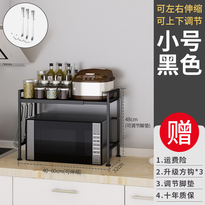 [ordinary-black] double-layer microwave rack +3 hooks (retractable 40-60cm)