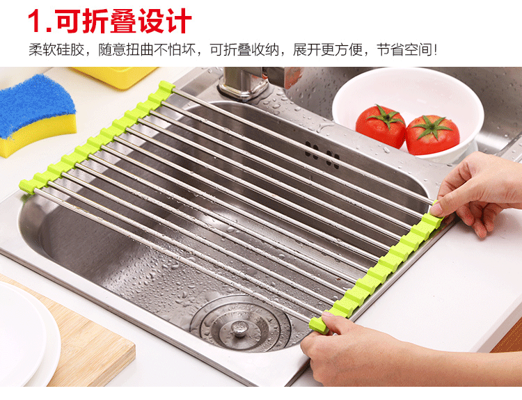 foldable silicone stainless steel vegetable and fruit draining bowl rack kitchen household sink storage rack large multi-functional 25 tubes