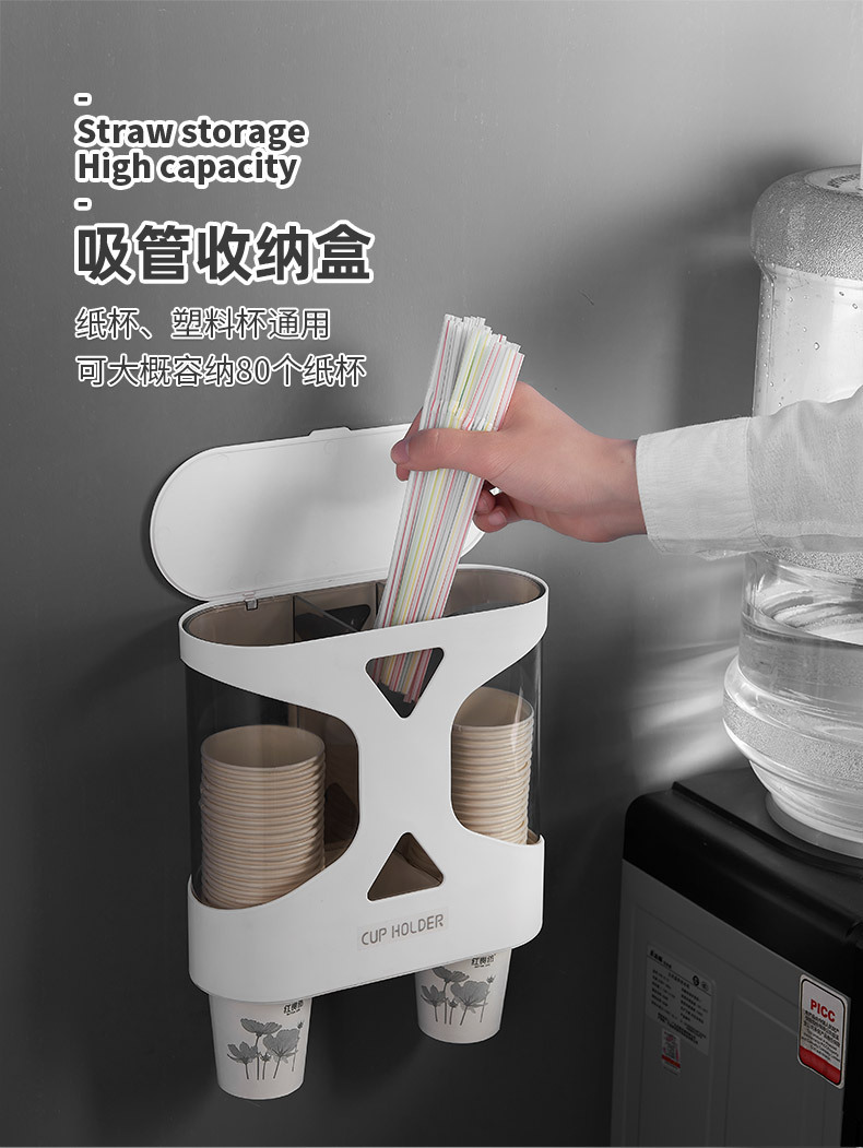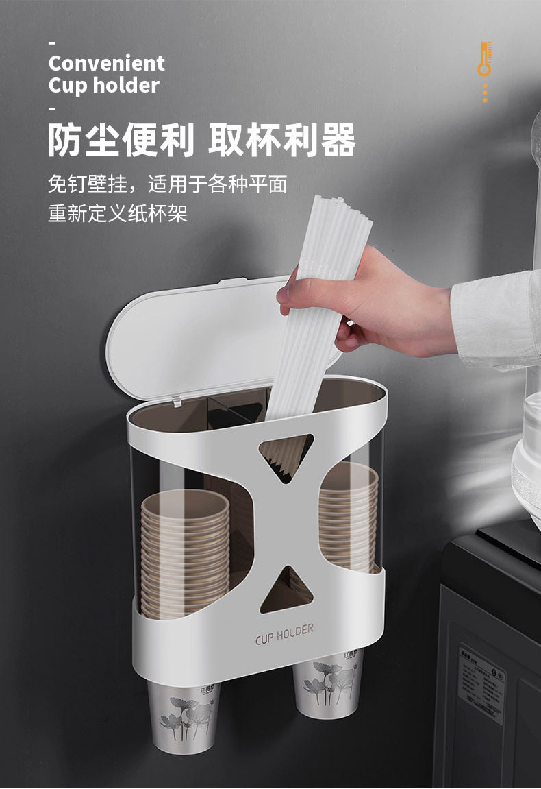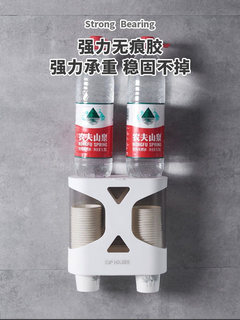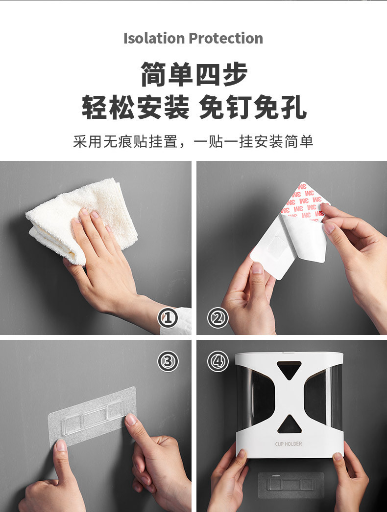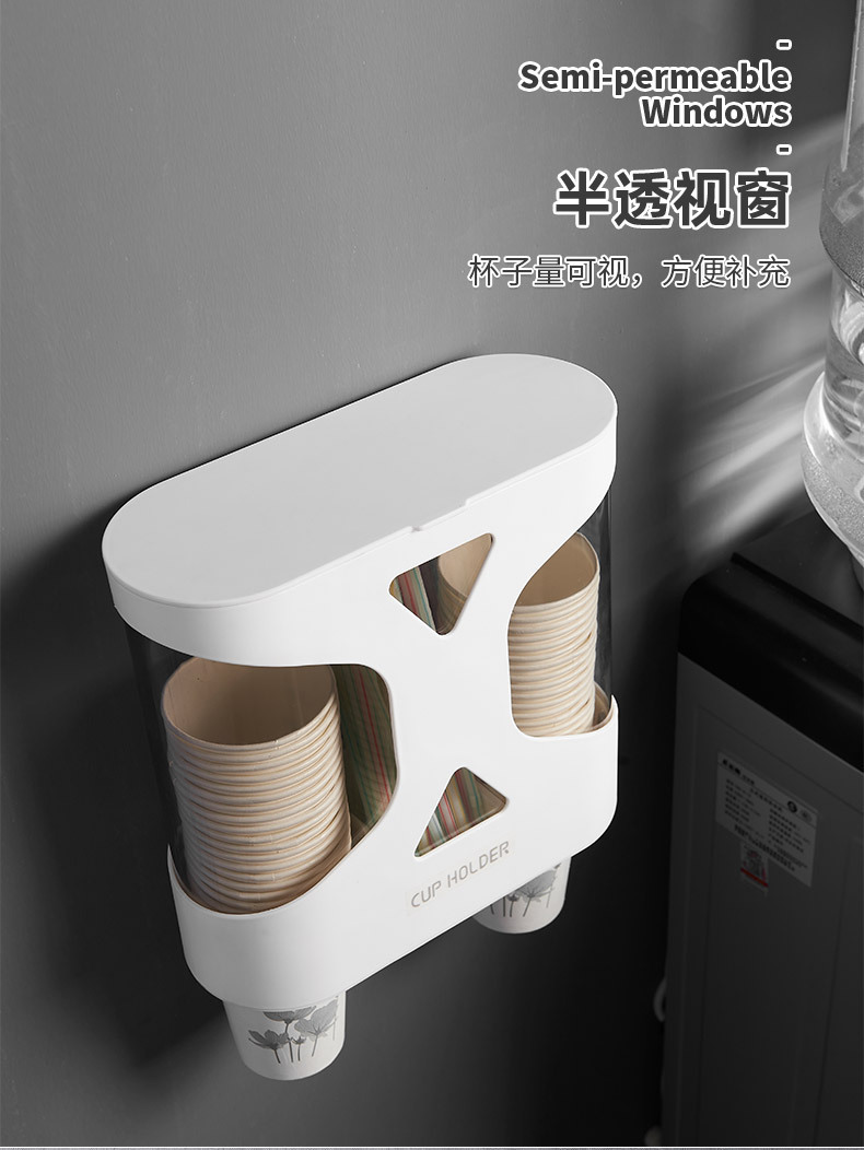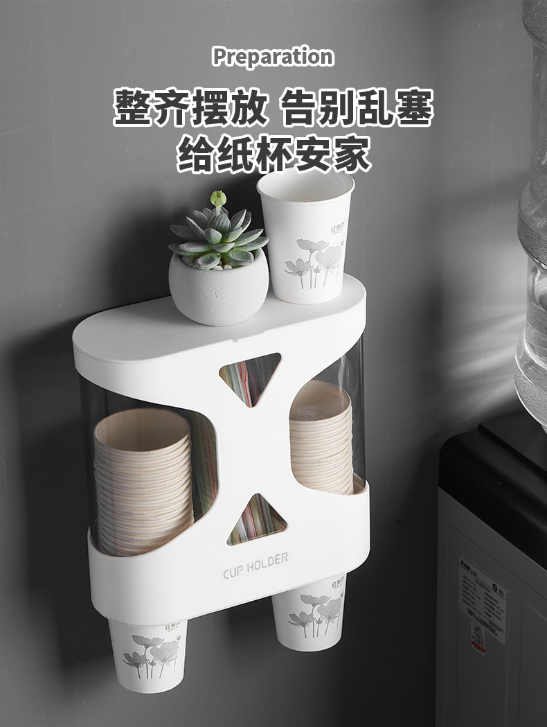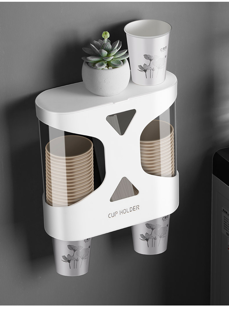 Punch-Free Disposable Cup Cup Saucer Dustproof Waterproof Wall-Mounted Double Cup Holder Plastic Cup Holder Cup Saucer