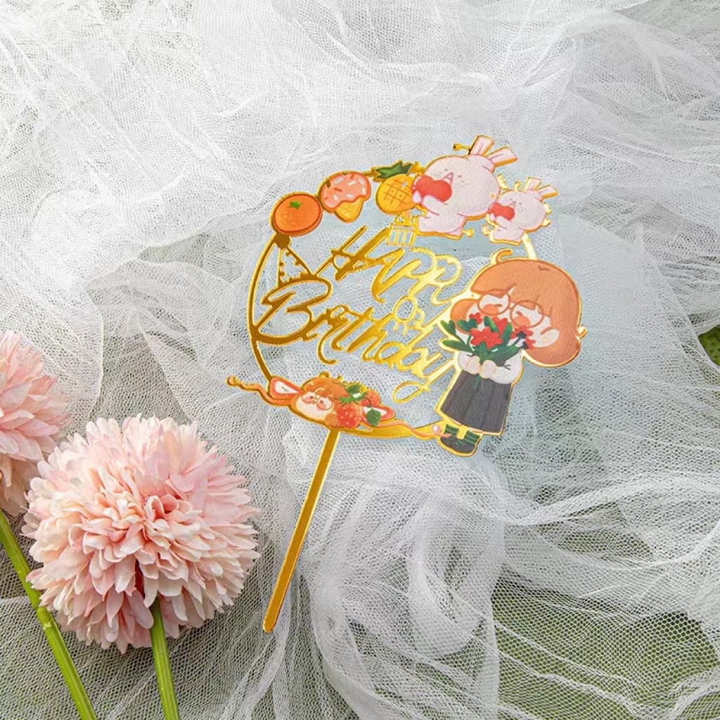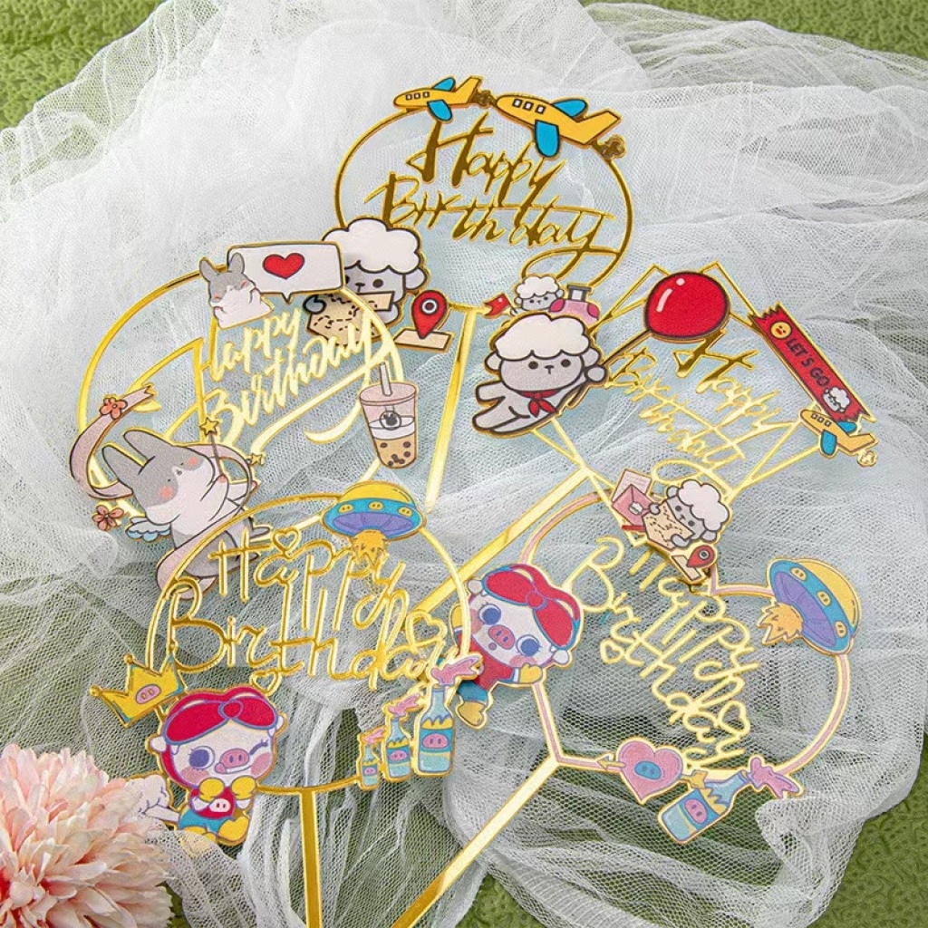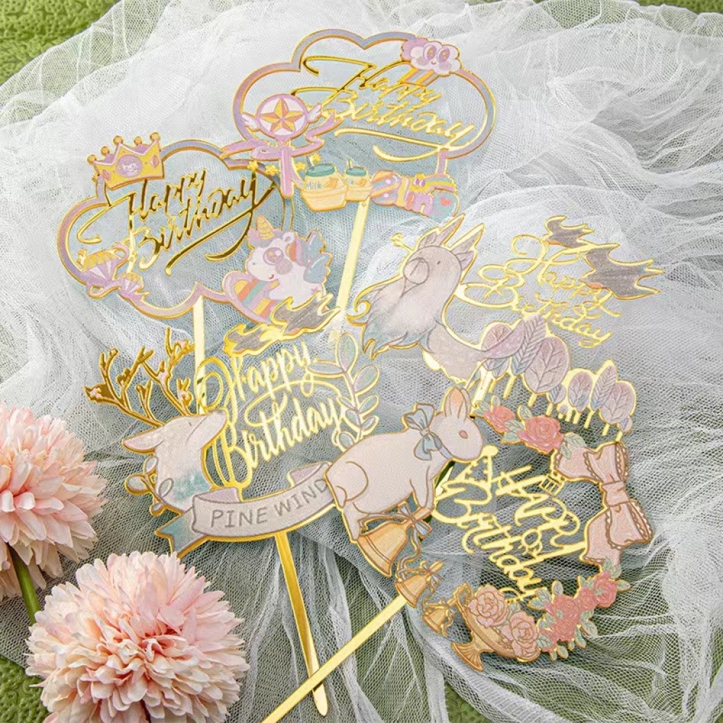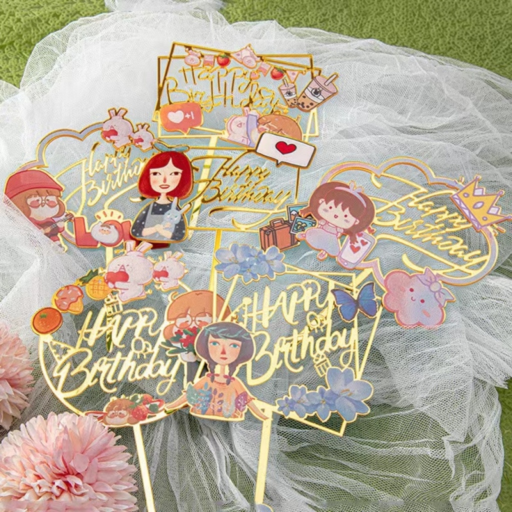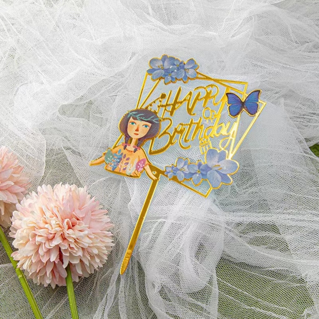birthday color printing cake insert cartoon flower butterfly various styles party supplies birthday supplies