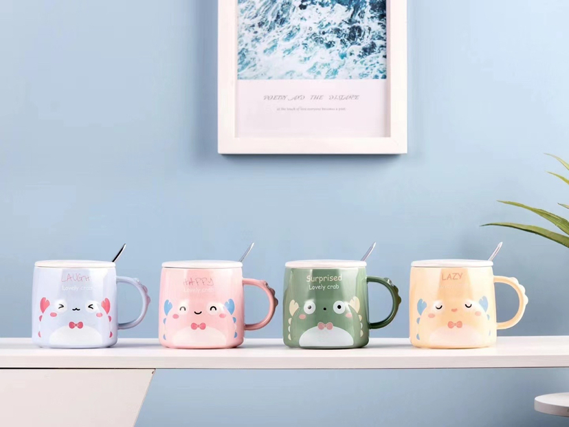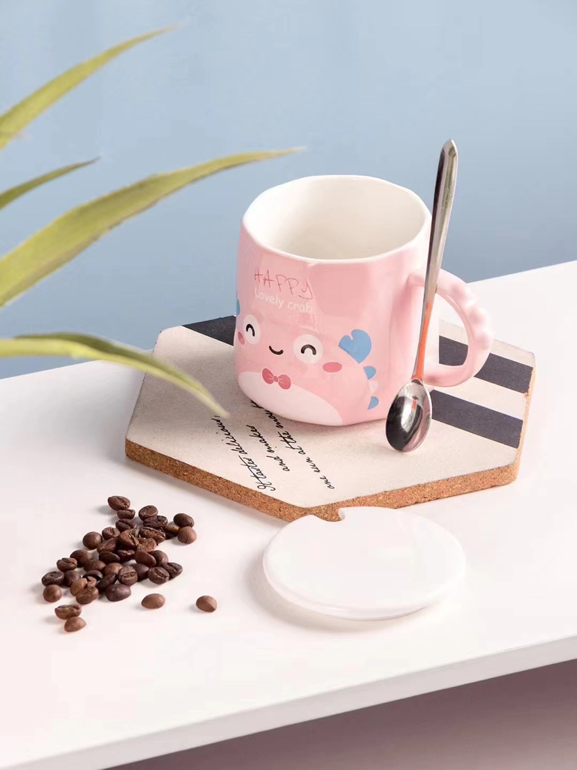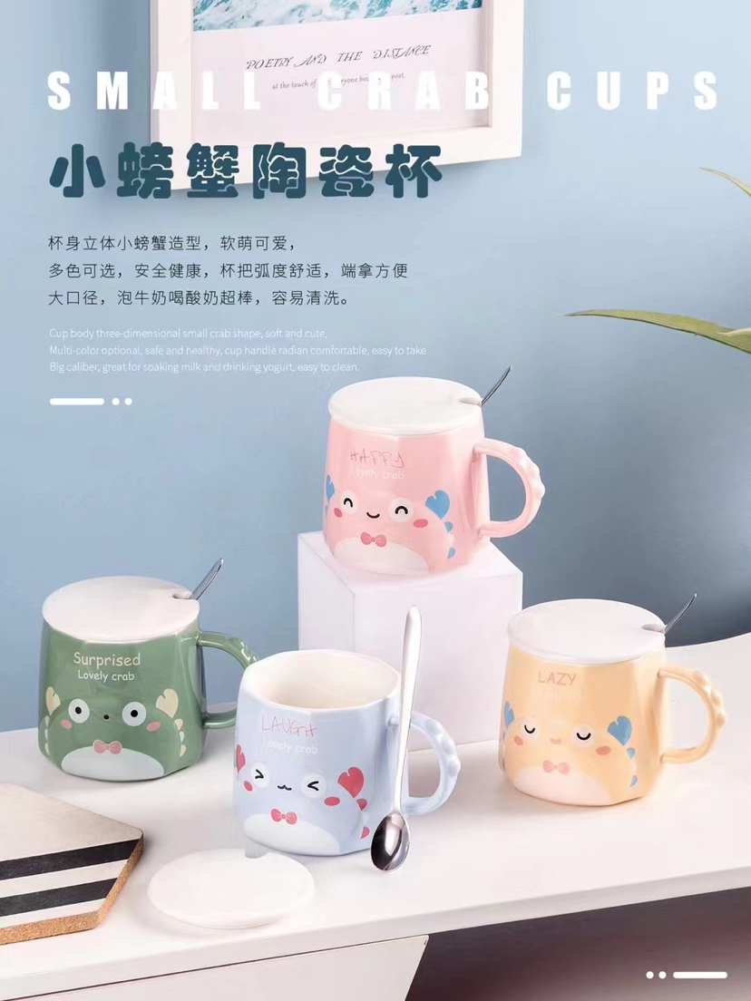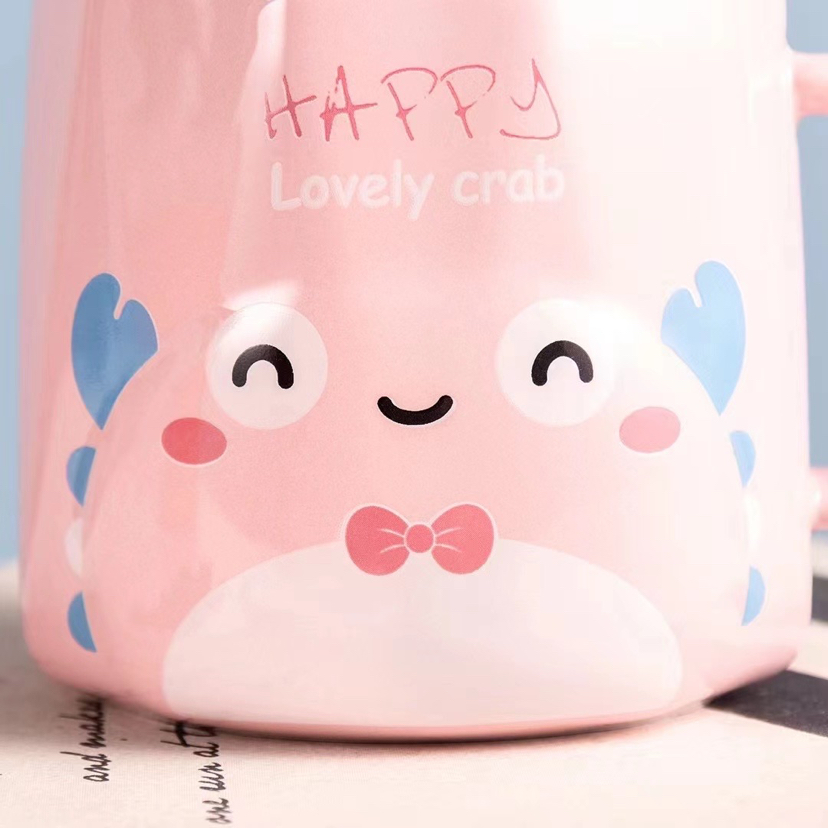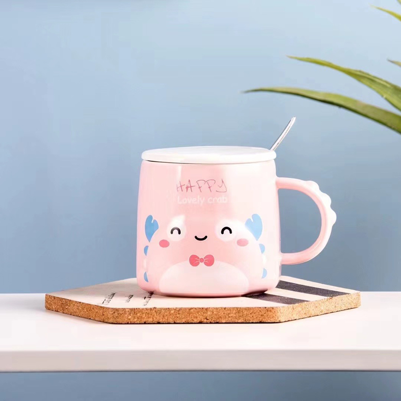 Creative Cute Little Crab Ceramic Cup with Cover with Spoon Coffee Cup Mug Student Milk Cup