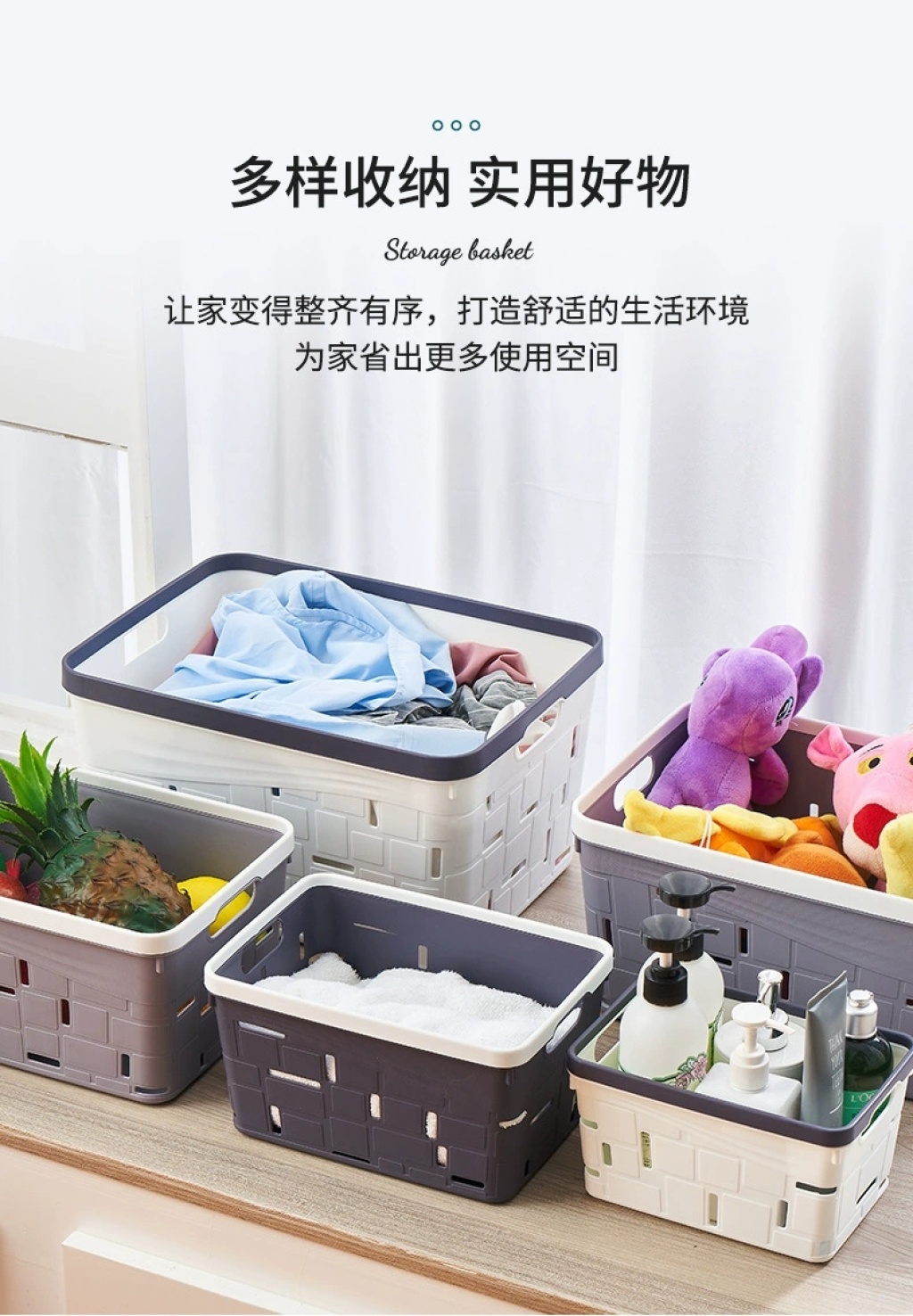 35-865 black and white gray kitchen bedroom desktop bathroom storage box household multi-functional storage basket organizing basket