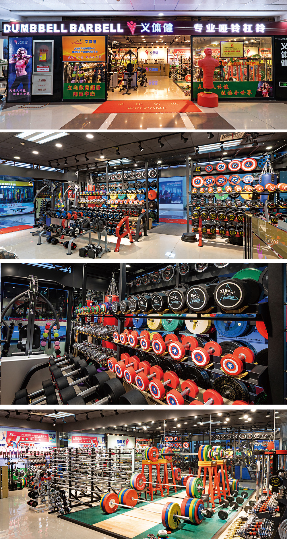 Yiwu sports fitness supplies center! Yijianjian business hall, yijianjian sales business department, yijianjian9 A chain of professional franchise stores are jointly established! Business Area2000 duoping, Sports Fitness Supplies15000 multiple varieties, Yiwu distribution warehouse13000 multi-square, warehouse all year round120 stock of containers!
