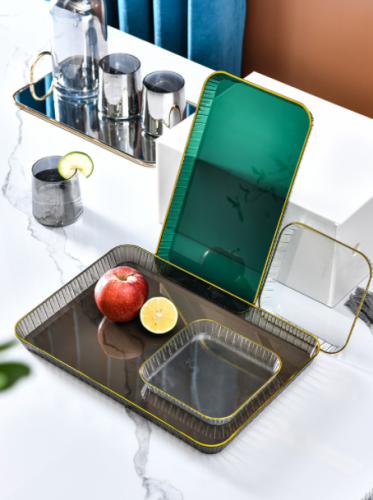 Rectangular Golden Edge Tray Household Transparent Bone Dish Tea Cup Storage Cup Tray