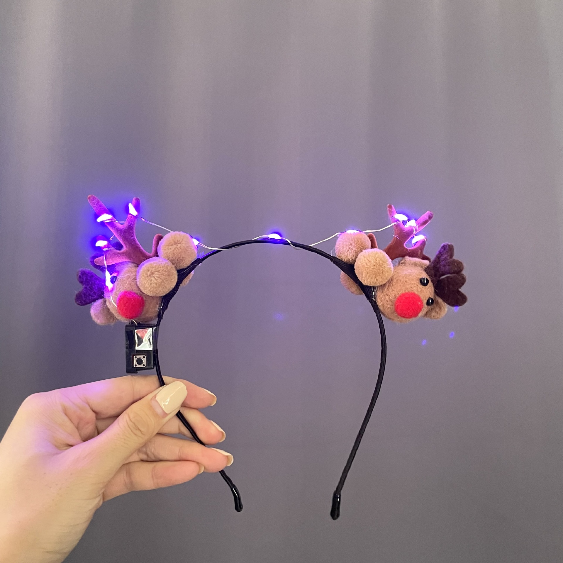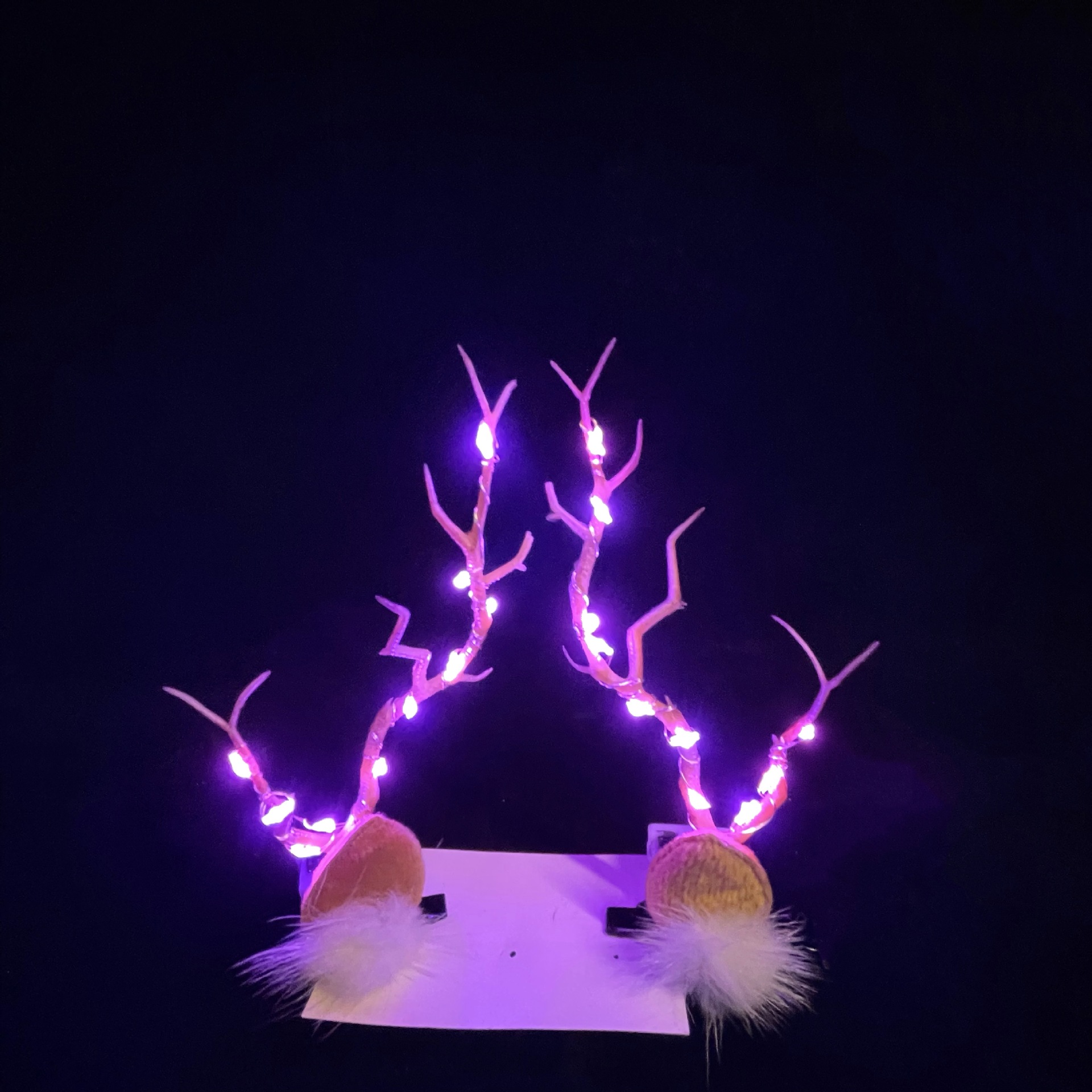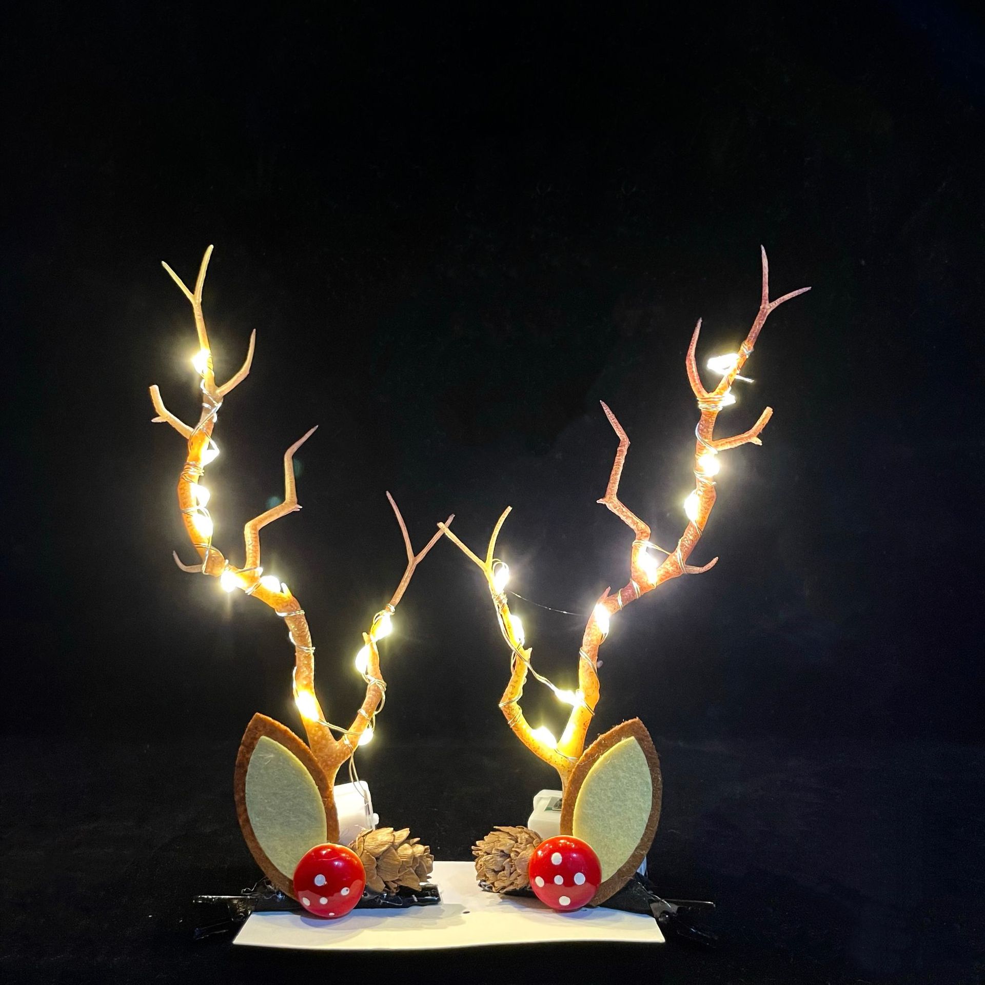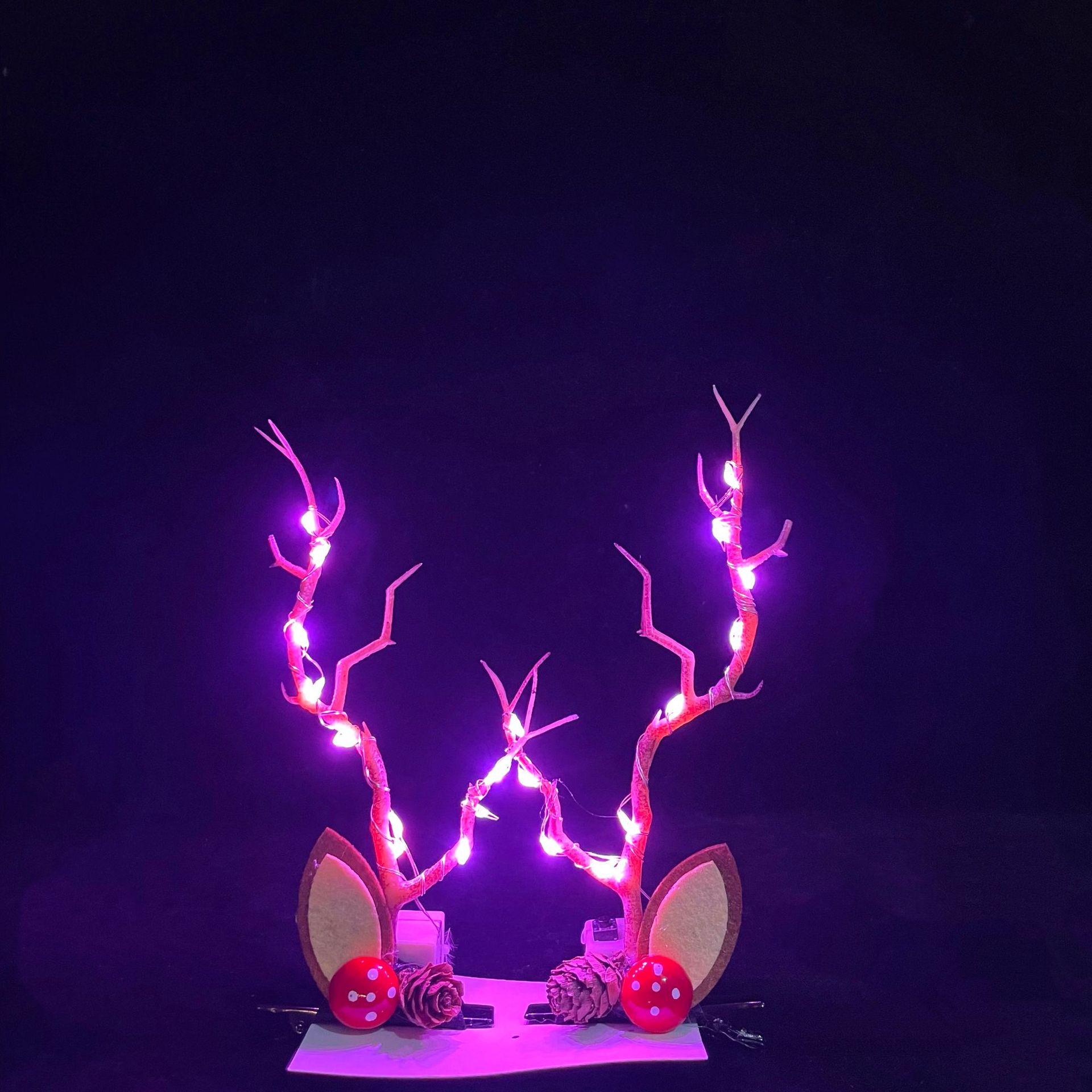 fur ball antlers-red colored lights