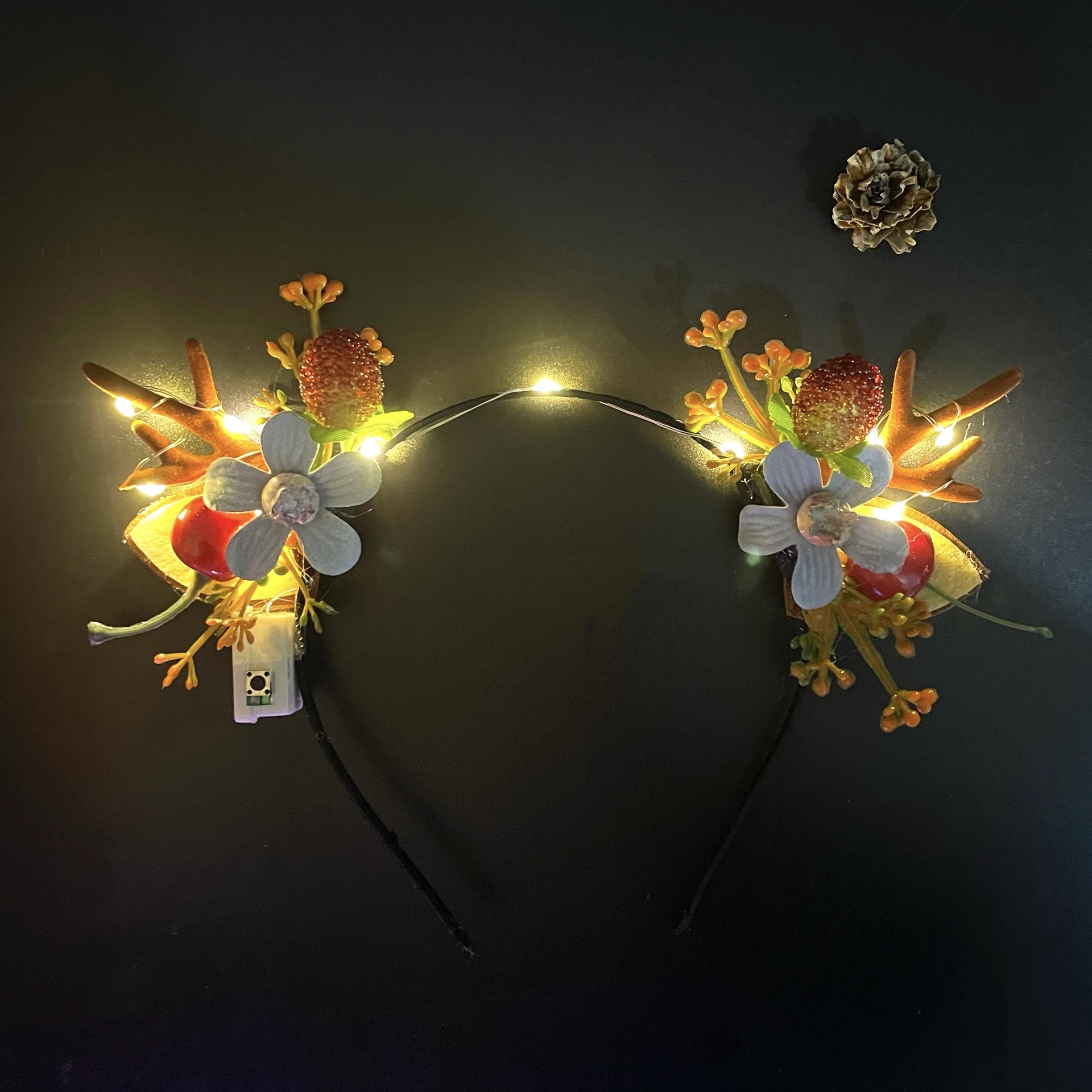 a pair of warm lights for pine cone branches
