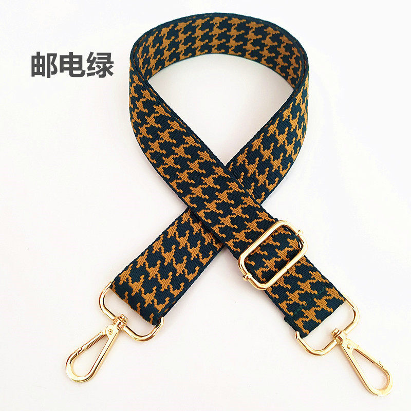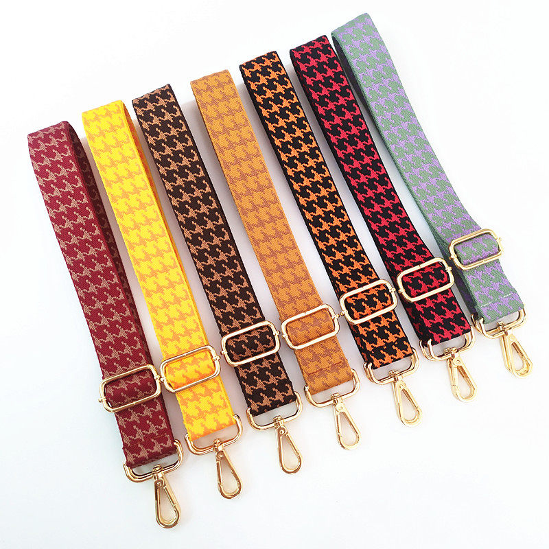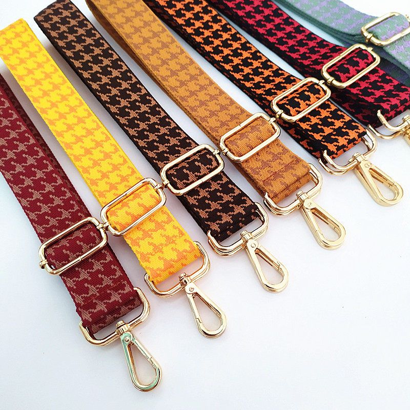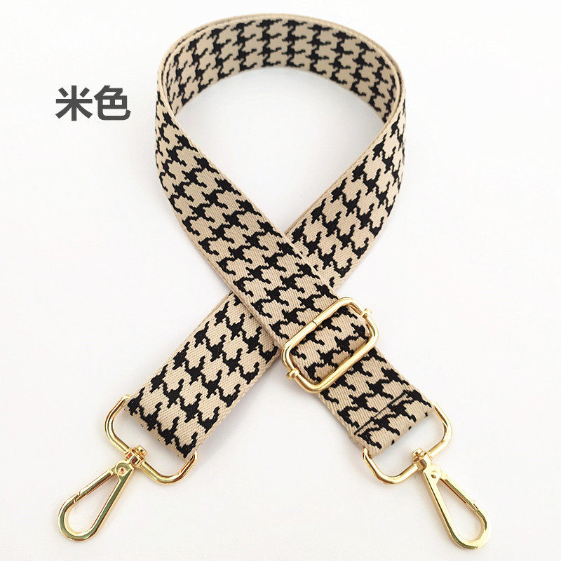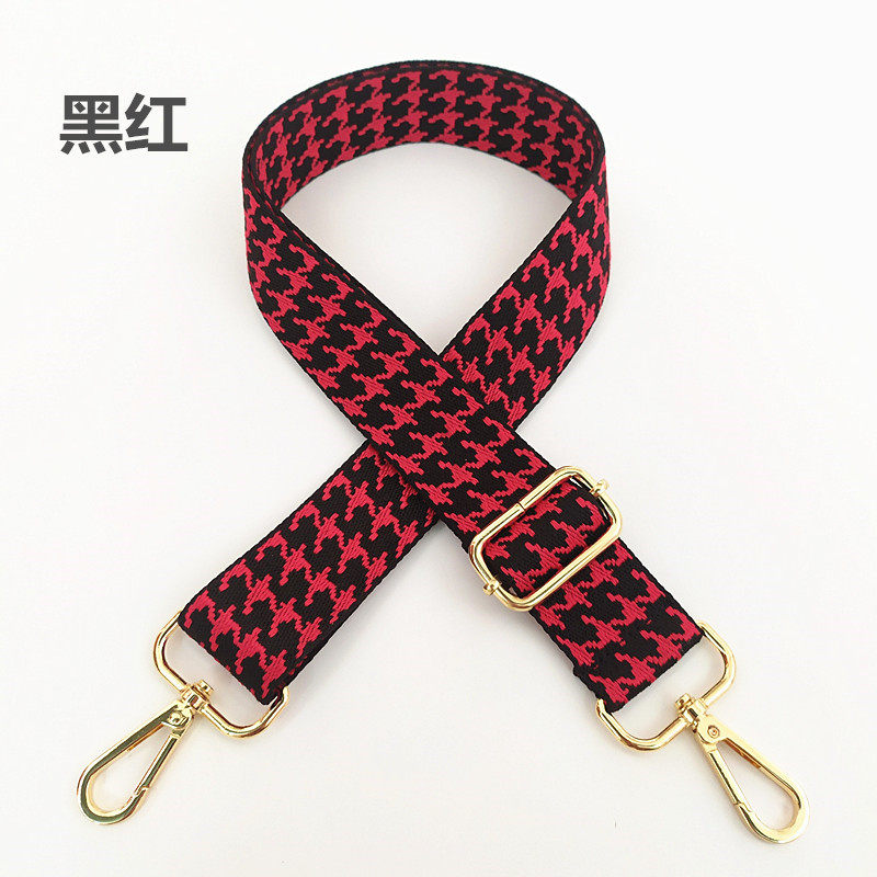 casual bag with ladies color wide shoulder strap houndstooth retro black adjustable long strap one-shoulder crossbody cloth belt