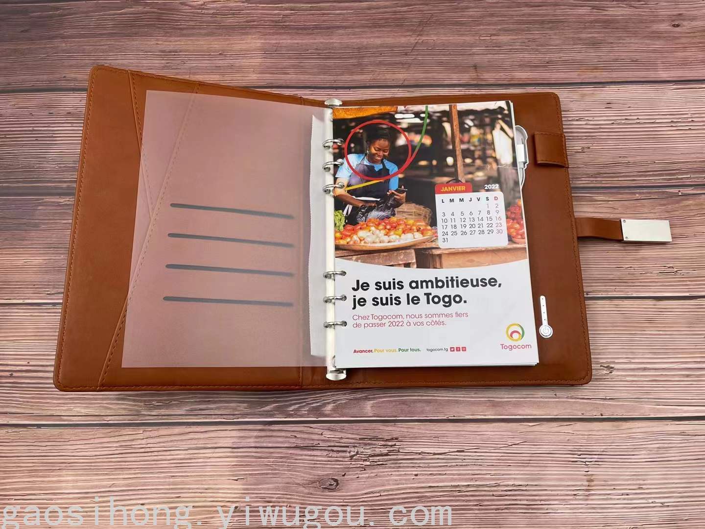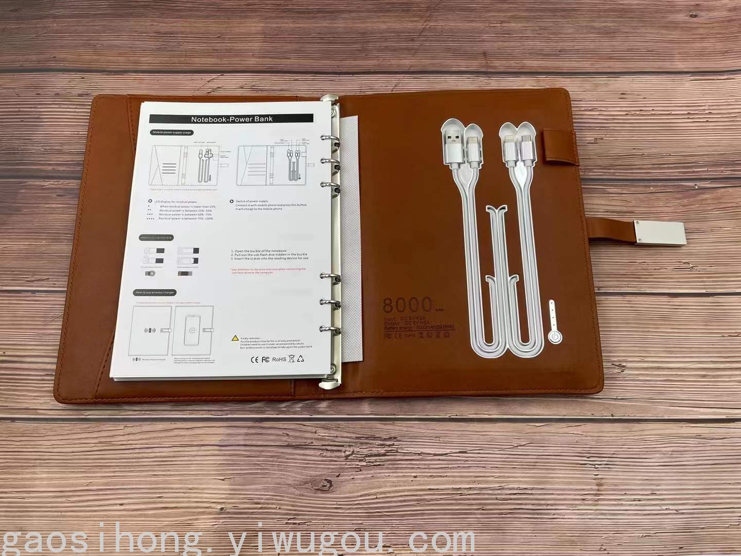 Factory Direct Charging Notebook Power Bank Notebook with Wireless Charger U Disk Charging Cable Pu Loose-Leaf