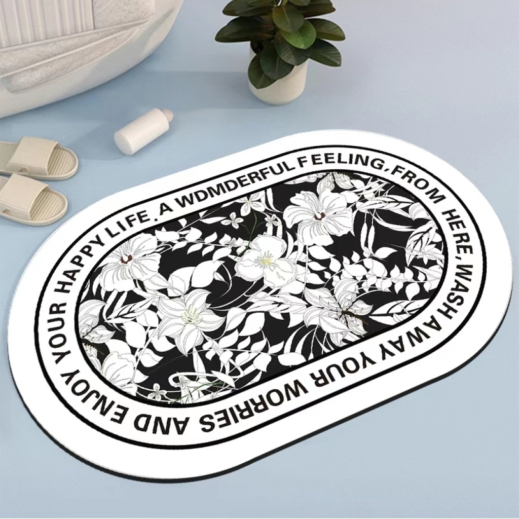 Oval cashmere-like printed mat, strong water absorption, many patterns