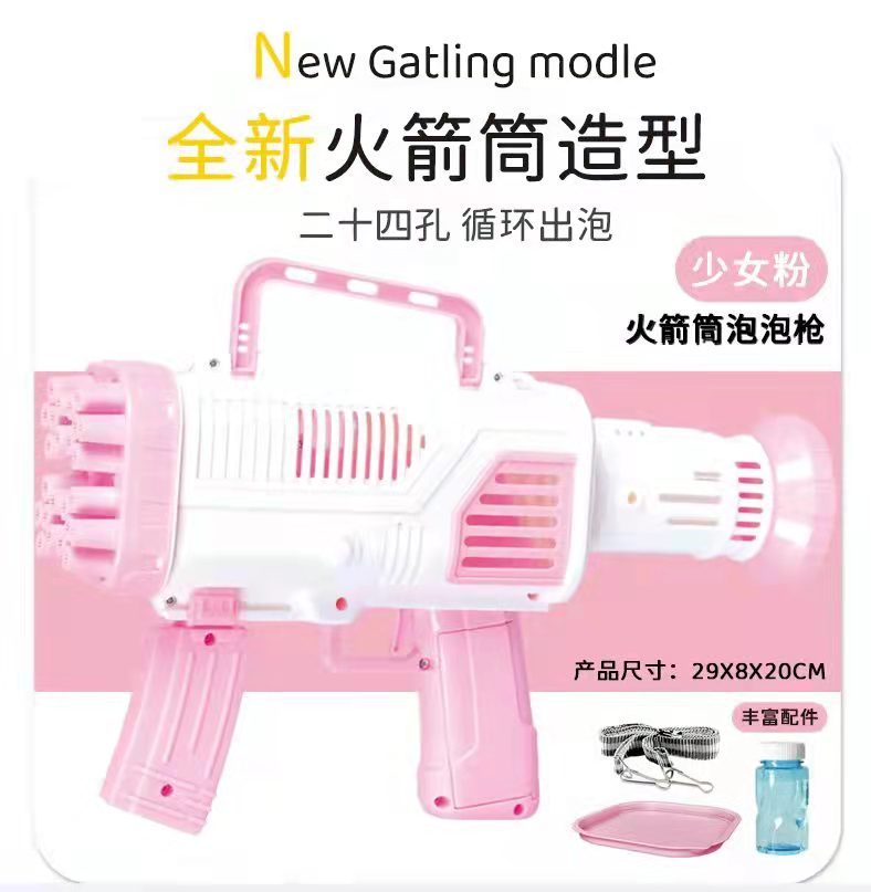 cross-border hot sale gatlin 24-hole rocket barrel bubble gun electric 24-hole bubble machine for children outdoor toys