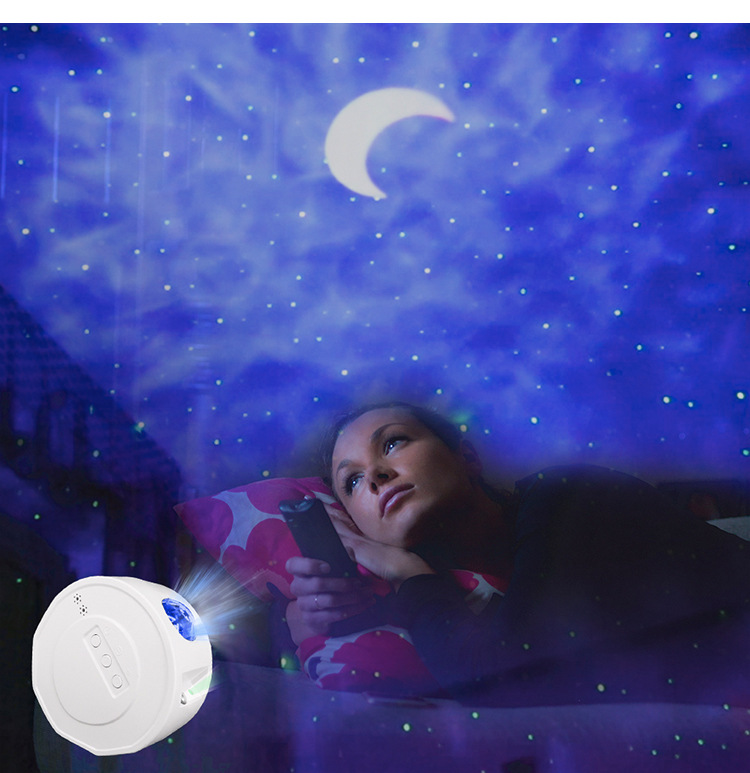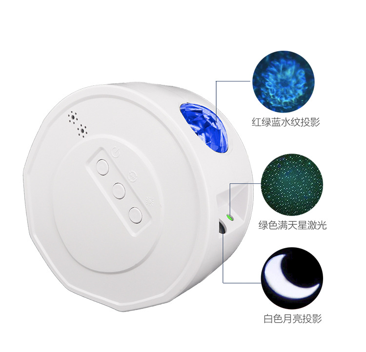 本产品由激光模式光、海浪光组成,可投射到闪烁的恒星、不移动的月亮、浮云等场景