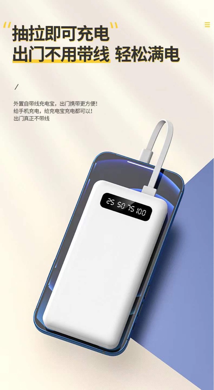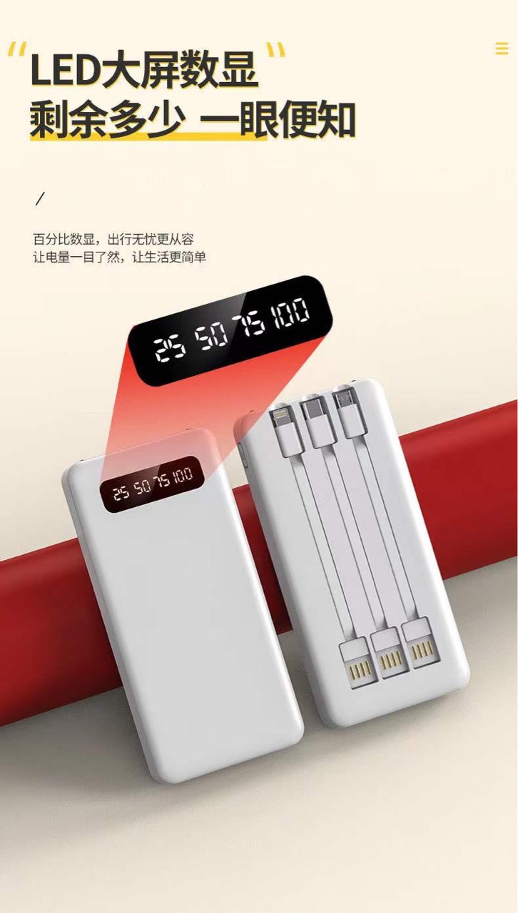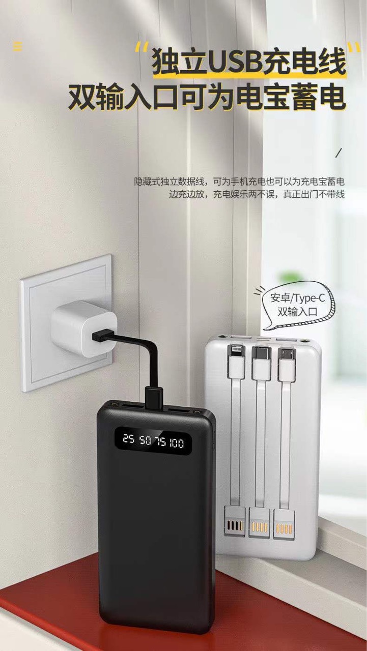 New External Three-Wire 20000MAh Mobile Power Logo Portable Three-Port Three-Output Ultra-Thin Power Bank Customization..
